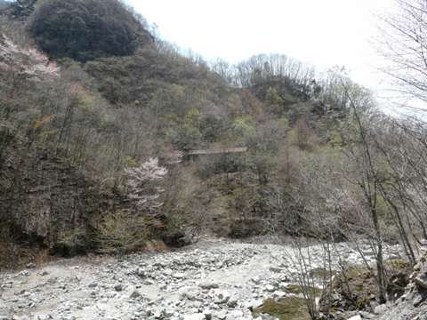 さて画像は、もうすぐ旧国道139号線となってしまうことが確定している、とある場所から谷底を見下ろしています!! 現在建造中の松姫トンネルが完成すると、深城ダムから小菅村が1本のトンネルで結ばれることになり・・・ 大月と奥多摩の区間が一気に短縮されます! そして松姫峠は廃道? ま、そこまでは行きませんが、旧国道139号となり(県道か村道に降格されるのかと) また以前の様に、12月から3月までの間、冬季通行止になってしまうのかもしれません! ちなみに、自分がココまで上がってくるために使ったループ状のトンネルも、葛野川ダムに常駐する東京電力の人たちのための道路になってしまうのかと・・・ と、話を戻しますが・・・ 谷底には、葛野川ダム正面攻略に絶対必要となる林道・葛野川線が見えています!! 恐らく、奥多摩方面最大級となるはずの片洞門も、この時期は鬱蒼とした樹木に覆われてしまっていくす!! って言うか、生で走ってみたいぞココ!!(欲) 画的にも結構面白いモノが撮れそうですし!! そして、この砂防ダムも藪の中・・・ この砂防ダムは、構造的にちょっと疑問があるので、意地でも見に行きたい場所なのですが!! さすがにこの時期は、藪漕ぎが厳しそうですね!(涙) それよりも、マムちゃん(マムシの事)や、ヤマビー(山蛭)がウヨウヨしていそうで!!(泣) 冬枯れの時期以外は、怖くて藪漕ぎしたくない気分です・・・ 更にその奥には!! 林道・葛野川線の終点。 そう、すなわち! 葛野川ダムが(ほぼ)正面から見える場所が待ち受けているんです! が!! あの憎くきゲートが!!(涙) あれさえなければ! 通って良い事になっているのに閉めているなんて!!(怒) はあ・・・(落胆) こう、マジマジと眺めると、なんか気分が落ち込みそうなので先に進むことにします。 この先に待ち受けている、林道・土室川線目指して!! って、2度ある事は3度ある?? つづく。