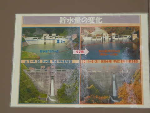 ついでに比較ネタが続きます? さて今度は・・・ 季節によって変わるダムの貯水量の話。 普通・・・ 夏場は水不足を心配して、大量に水を蓄えているようなイメージのあるダム湖。 が、です! 以前にも、この話題は何度か出て来ましたが・・・ 梅雨時から台風シーズンに掛けて。 大雨が降ってダムより上流の川が増水しても良いように・・・ 大体の場合。 5月下旬から6月にかけて、水の量を減らします! 深瀬ダムの場合。 水深で15m。 貯める水の量にして、最大で約1/5まで落とすそうです!! そして、10月以降・・・ 翌年の事も考慮して、水を貯めはじめます。 ま、特に関東の冬場は雨が少ないですからね! 過去に冬場の給水制限が発令されそうになった事が2回ありましたしね!!(唖) それに、翌春の田植えシーズンに備えて水を貯めておかないといけませんし!! って言うか、これはかなり極端な例ですけどね!(笑) って言うか、この淵きり一杯感は中々のモノがありますけど!!(萌) 秋口・・・ この淵きり一杯の光景。 一度で良いから見てみたい気分です! でも、なかなかココまでは貯めることが無いんですけどね(涙)