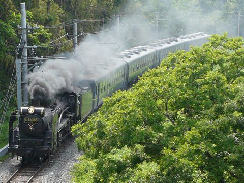 さて今日は、35℃を超える猛暑の中。 山梨、埼玉、群馬と、秩父に接する地域を飛び回っていました。 もちろん、最大の目的は「バイクの森おがの」に行くことですが・・・ その帰り。 ふと立ち寄った秩父鉄道沿線。 色々とファンサービスで、色んな復刻版カラーリングの電車を走らせたり! 銚子電鉄とタイアップしてイベントを開催したり!(驚) そして・・・ 週末恒例なのがパレオ号。 水着のパレオとは違いますよ!(慌) とにかく! 夏休み中は、チビッコ達に大人気の蒸気機関車が牽引する列車です。 で! 去年。 突然の様にデフ(デフロスター:整流板)の形を変えて!(驚) その筋の方々が大騒ぎしたのですが!(凄) 今年もまた、突然の様に変形「門デフ」を装備して走らせているようで! 去年は現物を見逃してしまっていたのですが・・・(悔) 今年は偶然にも、その走行時間に遭い!(運) とは言え・・・ 普段、見慣れている格好と比べると・・・ って言うかC58に、この形のデフは似合わない気が! やっぱし、普段の形に戻った方が良さそうな気が! とは言え・・・ この手のレアな画像を撮りに来る人たちで秩父が賑わうのは、良い事でもありますからね! 否定できないところが・・・