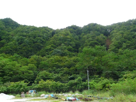 さて画像は、5月の「まだ木の葉が茂る前」のモノ。 神流川の対岸に廃社宅が見えています! が! さすがに8月ともなると! そりゃあもう! モジャモジャと生えまくり?? あんな場所に廃社宅が隠れているなんて誰も想像しない状態になっています!!(凄) そしてもう一つ! この林の中に、索道と集材機が残っているはずなのですが・・・ あれ? 何か、索道のワイヤーが見えないんですけど!!(焦) って言うか!!(叫) こちら側のワイヤーが固定されていた場所が撤去されちゃっているんですけど!!(泣) って言うか、完全に索道が消滅しているんですけど!!(涙) ああ、また一つ・・・(悔) この道沿いから索道が消えていく!!(悲)