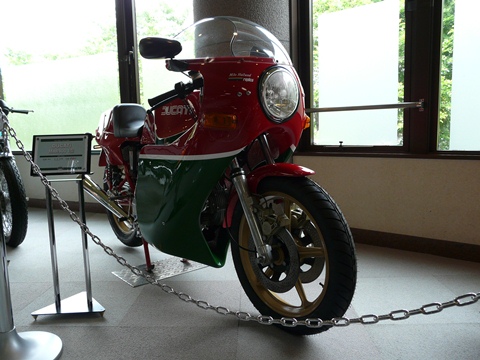 とりあえずですよ! 明日・・・ 夜が明ければ、最後の日となる「バイクの森おがの」 にも関わらず、昨日からヘンな方向に突き進んでいく自分?(困) と言う事で今回は! 少しのマトモに話に戻ります? って言うか遅すぎ??(焦) さて画像は・・・ 以前にも紹介しましたが! そして以前にも、この話は書きましたが・・・ このバイクはですね・・・ 自分がバイクに興味を持つきっかけを作った1台です! 高校1,2年と・・・ とにかく、ひたすら登山に明け暮れていた自分! もちろん「3ナイ運動」とかいうくだらない教育勅語に踊らされ(悔) ま、早い話が「乗らず嫌い」をしていたんですよ! ですが! 近所のバイク屋の店先に、このDUCATI 900MHR(マイク・ヘイルウッド・レプリカ)が並んでいるのょみて!(輝) って言うか、生まれて初めて見た「カウル付きのバイク」 当時の国産車は、数々の規制だらけでなんの輝きも持たない!(涙) どちらかと言うと画一的で、あまり個性のないものにしか見えなかった時代(涙) が、このMHRの存在は!(驚) そして、ピカピカ&キラキラと輝いたボディー!(凄) バイクと言うのも捨てたもんじゃないな! と、興味をもつきっかけを作ってくれたバイクなんです。 その後・・・ 高3の春。 受験生になるという身分にも関わらず!(笑) 母親の言いなりに原付免許を取り! そして3万円で買ってもらった、ポンコツに近いハスラーで、こちら側の世界に入り込んでしまったのです! あれから23年・・・(長) そんな、約四半世紀の門を叩いてくれたのがMHR。 ココに置いてあるのは、貴重な1型のようですが! オイル交換をするのに、いちいちタイヤとカウルを外さないといけない!(困) メンテナンス性のことなんて何も考えていない1型のカウルを装着しているので、たぶん1型。 って言うか、その辺がイタ車らしくて良いかも?(笑) って言うか、コレくらいの苦労を笑える「広い心」がないと外車に手を出してはいけません! 特にイタ車は・・・ 2型以降は、カウルが上下2分割となるので、メンテナンス性が向上します。 ただし、割らずに脱着するのが難しいという噂も聞いたことがありますけど・・・ で・・・ 走行しているうちに、細かい改造をされて1型か2型か分からなくなってしまった機体も多いそうで? そして次に!! このサイドビューを見たとき!(叫) 何か、こう・・・ 輝く物を感じたというか!!(光) 自分を、深いところに一気に連れて行ってくれたのが!!(笑) このbimota db1です! 初めて見たときの印象。 「何? この格好悪いバイク」と思ったのですが・・・ が? 何故かです! その姿が目に焼きつき!! どうしても忘れられない存在になり! 何度か写真を見ているうちに「どうしても欲しい」と思えるようになってきたから不思議なんです!(笑) そして・・・ 自分が外車に手を出す先導役となったしまったんです! ただし、当時の免許制度では・・・ 400cc以上(限定解除)は、試験所で検定を受けないといけないうえ! 特に神奈川県は、合格率が10%台と言う難関! 自分も1度、受けに行きましたが・・・ 事前審査(8の字押し)で失格!(泣) コースにすら出ることが出来ず!(恥) ちなみに当日・・・ 「試験担当官に名前を呼ばれたときの返事の声が小さい」と言う理由だけで失格になった、もっと悲しい人もいました!(滝涙) そんなこんなで、中型自動2輪で乗れるMOTO GUZZIを手に入れるまで5年近くもの間を費やすことになるのですが・・・ ま、そんな思い出のバイクが2台、展示されている「バイクの森おがの」。 みなさんもきっと「あの時、このバイクを見たおかげで!」と思う1台と出会えることと思います!! さあ! 泣いても笑っても明日がラスト!! って言うか、最終日に見学に入れる人が羨ましいです!!