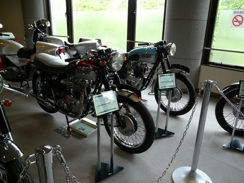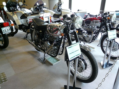 トライアンフ。 思い起こせば今から5年前・・・ 速度3号を買って喜んでいた自分に、ものすごく悲しい言葉が浴びせられました!(泣) トライアンフって何処の(国産)メーカーのバイクですか? あまりのショックに・・・(凹) 暫く立ち直れなかった記憶が!!(泣) って言うか、バイクに乗っている人なら、トライアンフとか、BSAとかノートンとかラベルダとか・・・ その他色々のメーカを知ってて当たり前と思っていた自分に、悲しい真実を突きつけた言葉でした(泣) ま、そんな人達でもですよ! 何となく、この形のバイクは知っているでしょう?? え? 誰ですか? W650(400)とか言ったのは!?(怒) ね? 似ても似つかないでしょ!?(訴) トライアンフには、シリンダーの横にベベルギアとか付いてないもん!! 一番上の画像は、トライアンフT120。 ま、恐らく、日本国内では一番人気のある形? 個人的には、それ以前のプランジャーサス仕様のものとか、バスタブタイプのヤツの方が好きですけど! ま、とにかくです! 国内では人気の高いイギリス製の旧車。 結構大量に展示してあります! 50代、60代の方には懐かしすぎる存在です! ただ・・・ この手のバイクを前に語り始めると物凄く長くなるのが困り物ですけど!(笑) 「昔、乗ってた」と言う思い出話から始まり・・・ いつしか自慢話になり・・・ (お酒でも入ろうものなら)気が付いたときには武勇伝に変わり!!(唖) 下手すると2時間くらい語られてしまう・・・(涙) 無下に話の腰を折るのも失礼ですから(泣) 我慢して聞きながら・・・ エンドレス(同じ話が繰り返される)状態に入る前に逃げないと大変なことになるのが!!(焦) とは言え! 噂話で聞くことの多い。 そしてバイク雑誌の旧車特集で出てくることも多いイギリス車。 一度、生で見ておくことをお勧めします! なお・・・ (新生)トライアンフからは、T120などをモチーフにしたボンネビルと言うバイクが発売されていますが・・・ いや、ボンネビルを侮っちゃいけませんよ! 確かに150キロ以上出そうとすると大変ですけど! って、それは既にスピード違反ですけど!(焦) 物凄く乗りやすく! そして恐ろしいほどの安定性と、巡航速度(特にコーナリングスピードが)を誇り! しかも、トルクフルで、アクセルを何処から開けていってもモリモリと加速していく!(凄) と、話がズレるので、この辺で止めておいて!!(焦) 一度は正真正銘の本物を見ておきましょう!! でも・・・ 閉館まで「あと3日」(焦)!