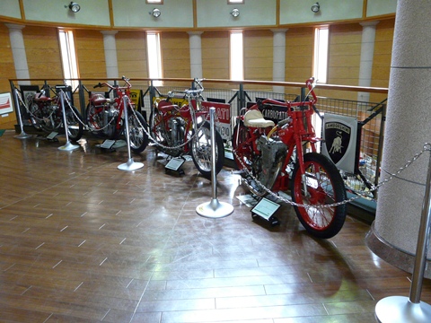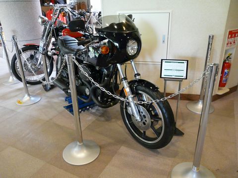ちょっと予定が前倒しになりましたが! 今日からは「さよなら、バイクの森おがの編」です!(涙) 去年の5月。 秩父の小鹿野町にオープンしたバイクミュージアム! 元を正せばM山モータースさんOBの方のご協力で! とにかくですよ! 初めて行った時には、その凄さに感動しまくり! 中では騒いではいけないのですが! 声を出すのを押さえられないほどの感動・・・ って言うか狂喜乱舞状態だった自分!!(踊) 何にせよ・・・ 熱い'70年代~'90年初頭を知る人達にとっては聖地です! もう感動の涙無しでは見学できません!! 個人的に文句を言えば・・・ ここまで凄い物が揃っているなら! もっと「濃い」のを展示して欲しいと欲をかいてしまうほど!! そんなバイクの森おがのが・・・ なんと今月一杯で閉館!!(泣崩れ) たった1年4ヶ月の儚い夢でした・・・(涙) 確かに・・・ 地理的に辛い場所ですしね! そして秩父方面自体。 頼みの鉱業が衰退の一途を辿り!! 小鹿野町だって財政が苦しいのは確かです!! これらの展示物を維持保存していくのは、物凄くお金が掛かります! 何しろ・・・ その殆どは、動くことが出来るコンディションにあるみたいですし! 閉館まで「あと9日」。 皆さん! ラストチャンスです!! しっかりと目に焼き付けておきましょう!! それくらい凄いバイクが「てんこ盛り」状態です!! 展示内容は、適時少しずつ変わっていますが・・・ 玄関を入るとソコには! すぐ左に「KADOYA」さんが店舗を構え・・・ そして、右側には色々なグッズの販売ブースなどもあり! 何故かMOTO GUZZIが売ってたりしますが・・・(笑) いや! それ以前ですよ! この画像。 一番手前のバイク! 自分。 画像を整理していて気付いたのですが!(焦) ハーレーは興味ないからと無視してしまったことを、今、物凄く悔やんでいるんですけど!!(恥) カスタムされちゃっているから気が付かなかったのですが!! コレ・・・ KRですよ!!(叫) 現在も経営危機にあるハーレー・ダヴィドソン(焦) 実は過去に何度も倒産しかけているんです!! 特に、品質の悪さ・・・ そして故障の多さ・・・ 高コスト体質と、倒産する企業の3種の神器を抱えてしまっていた50年代。 それを挽回するために造られたパンヘッドと呼ばれるバイクの失敗が響き・・・ ハーレーは倒産寸前に陥ります! が、それを救ったのが、このKRなんです!! 現在、一番人気のあるスポーツスターXLH883および1200のご先祖様! この(ハーレーにしては)コンパクトな750ccのエンジンは、故障が少なく・・・ そして何より低価格で製造でき! しかも、ダートトラックレースやロードレースでの速さもある!! このバイクのおかけで、ハーレーは生き返ったんです! が! 自分。 このKRの実車を見たことがなかったんですよ!! しかも、色んな書物を見ても写真ではなく「画」しか残っていなくて!! が、です!! すぐ目の前に置いてあったのに!!(泣) それをスルーしちゃっていたなんて!!(恥) はぁ・・・ もう、再訪する機会はありません・・・(悔) ただ・・・ ノーマルに戻してくれていたら、もっと良かったのに! でも、ソレを見逃していたとしたら、今頃悔しすぎて眠れない日々が続いていたかもしれません・・・