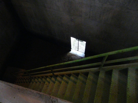 二瀬ダム・みてんべぇツアー2010編。 まだダム邸内の作業用トンネル内を歩いているのですが・・・ 再び皆さん! 何か屯(たむろ)しています! この先、明かりが見えない場所を目の前にして立ち止まっています! そして、その先には!! まるで聳え立つような階段が!!(凄) 二瀬ダム両翼にある点検用の出入り口に行くための階段! 画像だと、イマイチその迫力が分からないと思いますが! って言うか自分の技術不足??(泣) 画像右側の壁を伝う析出した石灰の角度を見てください!(唖) 傾斜角45°とか言う生易しいものではありません!(壁) 限りなく60°に近いぞコレ!(唖) ちなみに登山では・・・ 30%勾配(100m進むと30mの標高差が出る坂道)を超えると、急傾斜と呼ばれます! って言うか実際、登るのは「かなり辛い」んですよ! コレ・・・ 確実に、その上を行ってる感じがするんですけど!! 江戸時代に建てられ・・・ 現在に残っている彦根城とか姫路城の天守閣最上階に設けられている木の階段クラスの角度なんですけど!! しかもですよ!! 何か途中にバリケードみたいのが付いているんですけど!!(謎) もしかして通行禁止?? とか思っていたんですけどね・・・ なんとですよ!!(驚) あまりに急傾斜なので、階段を転げ落ちてしまう人が多発するため・・・(転) その人が一番下まで転げ落ちないように!(唖) そのフェンスに引っかかってそこで止まるように!!(痛) 怪我が少なくて済むように!!(怖) あのフェンスが設置されているんです!!(泣) このダムに勤務し・・・ 毎日の点検を続けている職員さん・・・ 実は命がけの仕事をしているんですね!!(震) 自分。 この階段・・・ 実は登ってみたくてウズウズしていたんですけど! って言うか、ダムに来たら階段登らないと始まらない??(笑) そんな気がしてならないんですけど!!(困) でも、そんな欲求とは裏腹に・・・ 「とりあえず今回は、ココから見るだけで登りません」とスルーされてしまったので・・・(泣崩) 求む! 来年の50周年記念の時は、ココを登る見学コースも!! つづく。