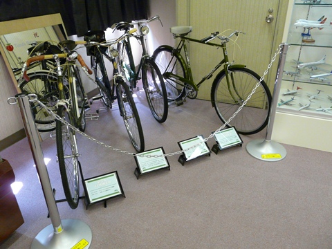 さよなら・バイクの森おがの編。 ああ!(泣) 閉館まで「あと2日」になってしまいました!! 最終日までに全てのバイクを紹介できないのは物凄く残念ですが! って言うか、自分も知らないのが多すぎて(特に古いドイツ車)、解説出来ないのが事実ですが!! そんな中。 オープン当時と比べて新しく加わった展示物も数多くあります! って、ただのチャリとか言っちゃダメですよ! これらは・・・ 1930~40年代に!(古) トライアンフ、BSA、ロイヤル・エンフィールドと言ったイギリスを代表するバイクメーカー(と言っても全て倒産して、別企業によって再生されていますが)が造った自転車なんです! って言うか・・・ 大体の場合、ヨーロッパのバイクメーカーは・・・ 自転車産業から始まり・・・ しかも、その殆どは家内制手工業に近い形? って言うか、自宅の裏庭にあるガレージとかで・・・ しかも個人が趣味で造っていたのが「スピードが出るから」と言う理由で評判になり! いつしかそれは、更なるスピードを求めてエンジンを積むようなり!! バイクメーカーとして成り立っていったパターンが多いんです!! そして!! このエンブレムを見ればお分かりかと思いますが・・・ 銃が2丁描かれていますよね? 第一次世界大戦、第二次世界大戦と! 軍事産業として活躍していったメーカーが一気に大きくなっていったんです! 自分。 自転車に関しては、全く分かりません! って言うか、バイクに乗るようになって以来・・・ (道の)何処を走って良いのか分からない!(困) そして、中途半端な道路政策しかない日本の国内で自転車に乗る恐ろしさを感じるようになり!!(泣) 今では一切乗ることがなくなりましたから!! ま・・・ 奥多摩に住んでいた時は・・・ 坂道が多すぎて自転車に乗りたいなんて間違っても思いませんでしたけど!(冬場は凍結が酷いし) 何にせよ! 戦前にバイクメーカーが造った自転車も展示されている「バイクの森おがの」。 もう後がないぞ!!(焦) 早く見に行きましょ!