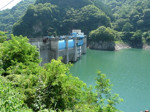 二瀬ダム・みてんべぇツアー2010編。 あまり、特設展望台からの風景ばかりだと飽きるので、とりあえず今回までとして・・・(焦) 日本でも数少ない重力式アーチダム。 ダムとして主流の重力コンクリート式と・・・ 円弧を描くアーチ式ダムの混血? って言うか、良いとこ取りのダム?? しかも最新の物と違って、建造時の効率とか・・・ メンテナンス性とか・・・ そのヘンは一切考えられていない!(困) って言うか職人技?(笑) とにかく造った人たちは鼻高々だったことでしょう!(威) そして機械にも「温か味のあるデザイン」が取り入れられた昭和初期だからこそ!(訴) こう言うデザインのダムが出来たのかと!!(凄) 何にせよ! 曲線美をいかに活かすかが?? こうやって、普段は登ることのできないダム中央に建てられた制御室の屋上から見る光景は、物凄く新鮮味があって良い物です!! あとは、真下から聳え立つ光景が見れたら最高なのですが・・・(悔) とりあえず今回は、夢かなわず終わってしまうのですが・・・(涙) さ、次回からはダム内部の話題です!