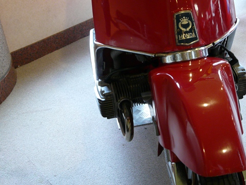 その昔・・・ と言っても '50~'60年代。 この時代のスクーターも、巨大化 & ゴージャス路線を突き進み!! 価格も軽自動車並みの価格となり!(唖) そして一気に衰退していったのでした・・・(悲) 恐らく、ここ数年で! 現状のビスクス人気も同じ道を歩むと確信している自分です! ただ・・・ 当時と比べると! プラスチックパーツだらけで! 物凄く安く造られている現在のビクスクは、(カワサキを除く)各メーカーの稼ぎ頭! って言うか確実に多くの利益を上げられる美味しい存在!! 主要部品なども海外生産に切り替わって来ていて・・・ とにかく儲けが凄いらしいです!! ですが! 当時の効果路線を突っ走るスクーターは、そうは行きませんでした!(涙) で! そんな中。 突っ走りすぎたホ☆ダさんか世の中に放った大失敗作!(滝涙) う~ん・・・ オリジナルペイントされちゃっているのがマジで残念ですけど!!(泣) ジュノオM85。 空冷フラットツイン120cc。 ってBMWなんかと同じエンジンレイアウト!(凄) しかも、125ccと言う小さな排気量で造ってしまうところが凄すぎ!!(唖) さらに無段変速機付き!!(凄) その気合の入れ方はマジで感動モノなんですけどね!! 豪勢過ぎて・・・ そして張り切りすぎたのが裏目になったのか? 車体が重過ぎて!!(泣) あまり機敏に走れなかったらしいです!(困) で・・・ 全然売れなかったらしいです!(滝涙) ま・・・ デザインも、ビジネスバイクっぽくてイマイチだったのも一因かもしれませんけど? とは言え! その気合だけは「買いだ!」??? で・・・ 売れなかっただけに? そして半分は「黒歴史」になりかけているだけに? 現存している車体が少ないんですよね・・・ レストアベース車は、たまに出てきますが・・・ アフターパーツが限りなく存在しないため直すことも出来ない! って言うか、構造が難しすぎて一般の人には無理!!(泣) ただ、このジュノオM85。 バイクの森おがのがオープンした当時には展示されていませんでした。 後になってから追加展示されたものなんです! こうやって、色々と展示内容も変えて経営努力を続けてきたのですが・・・(悲) 閉館まで「あと7日」。 悲しい現実からは逃れられません!!(泣) 今週末。 なんか天気はイマイチのようですが・・・ 是非、見学に行ってみて下さい! 見る人によっては・・・ 最高の空間になりますから!! お・ま・け・・・ ツインリンクもてぎ内にあるホンダコレクションホールに展示されているジュノオM85。 こちらが完全オリジナルに近い形で復元された物です。