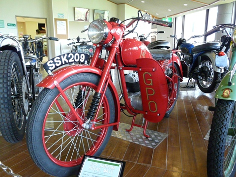 バイクの森おがので・・・ また、コレも一つ異色のバイクが展示されています! いや、別に・・・ 普通のBSA・バンタムなんですけどね! バイクとしてはコレと言って、珍しいわけではないんですけどね! 大量に造られたバイクですし!! ただ・・・ イギリス車にしては故障が少なく?? しかも、丈夫だという理由で!! ビジネスバイクとして活躍したのが、このバンタムなんです! なお上の画像は、郵便配達仕様。 しかも・・・ 現役で使われていた1台だそうです! ソレ風にレストアされたものではなく・・・ って言うか、イギリスも郵便局のバイクは「赤色」だったですね!(笑) ちょっと驚きモノでした! てっきり「黒色」とか思っていたのに・・・ 昔あった「ポストマン」と言う映画に出てきた郵便配達用のトラックが黒かったので、バイクも同じかと思っていたのに・・・ そしてもう1台。 同じバンタムでも、色違い! こちらは・・・ 専用のパニアケース(?)で取り付けられています! 集配業務などでの使用を考えて造られているそうです! それだけ堅牢なバイクだったのかと!! このようなバイクも色々と展示されています! さあ、閉館まで「あと2日」です! 時間があったら、是非、小鹿野町へ!! って、公共の交通機関(特に鉄道)がないから辛いんですよね、ココ・・・(涙) バスも西武秩父からの直通便が無いですし・・・