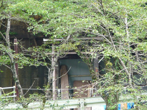 さて今度は右岸です!! 切り立った岩肌。 って言うか、峡谷? ソコにへばり付くかのように色々と残っている、ダム建造時の遺構の数々! が!(泣) さすがに夏場は樹木が生い茂っていて、ほぼ全てを隠してしまっています!(悔) あの藪の中に索道の鉄塔の足場らしき物とか! 色んな設備の土台とか残っているのに!! それが全て隠されてしまっている!!(涙) これが冬場なら、葉っぱが無くなってよく見えるはずなのに!!(悔) ただ・・・ 光の加減で「ほぼ逆光」になるから、画像は撮りづらくなってしまうんですけどね!(困) そして! 話が左岸に再び戻りますが!! ここにも色々と気になっていた遺構の跡らしき物が眠っているはずなんですよね・・・(涎) 妙なところにガードレールとか残ってるしね! あの場所までのアプローチできる道とか、必死に探しちゃいましたよ! ただし・・・ デジカメ最大望遠で見ているので(揺)。 あまり注視すると酔っちゃうのが難点なんですけどね!(涙) 更に!! あの緑色のH鋼は!!(叫) 斜面に1列に並んでいることから! も、もしかしたらインクラインの跡!?(滝涎) うお!(叫) あるよ!あるよ!! 想像以上に美味しそうなのが!! う゛~ん・・・ これも冬場なら、もっとはっきり見えるはずなのに!!(悔) そして方角さえ分かれば! 藪漕ぎせずに現地に辿り着けるかも知れないのに! ただし角度が急なため、かなりの危険を伴うたから!(落) 行くに行けない可能性もありますけど!! と・・・ 自分一人。 何故か見当違い名場所の画像を撮っているような気がするのは何故?? で、更にまだ続きます! ビバ・展望台??