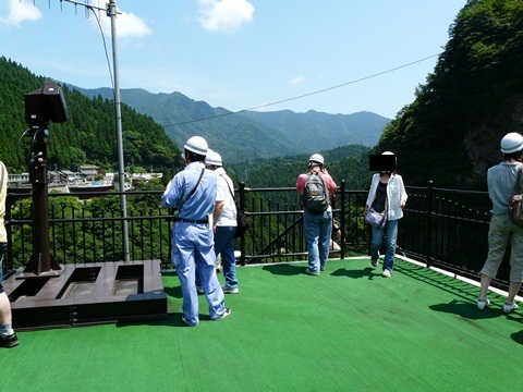 二瀬ダム・みてんべぇツアー2010編。 さて、ブリーフィングが終わり・・・ 一路、二瀬ダム本体へと向かう一行! え・・・ 何と言うか・・・ マジで普通の人の集まりです!(主張) あなたの隣にいるかもしれません! 隠れダムマニア!(笑) 特別に変わった格好とかしてませんから!! 普通に普段着で来てますから! 自分だけです!(焦) バイク用のライディングウエア着てたの!(焦) しかも、プロテクター部分がオレンジとか、マジで目立つ格好してたの!(困) で! 管理事務所前で全員。 ヘルメット着用となります! 自分。 間違ってもバイク用のヘルメット被って中に入ったりはしませんよ!(笑) ま、こんな事なら、自前の作業用ヘルメット持ってきても良かった??(謎) って言うか、一時は数を減らしたはずなのに! 何故か最近、自前の作業用ヘルメットが3つに増えてたりするんですけど!(謎) そんな事はどうでも良いから置いといて! ヘルメットを着用したら、今度はダム提の上を進みます!! この狭い道を観光バスとか通るから結構怖かったりしますが!!(焦) とりあえず作業用の歩道を通って先に進みます!! そして!! いざ! ダム内部へ!? 続く・・・