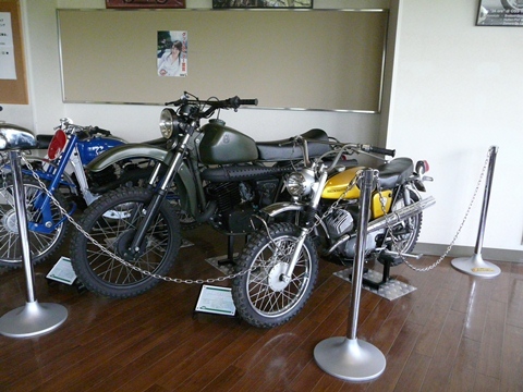 ただしトップが替わると、突然手のひら返したようにやめちゃうのが問題なんですけど!(困) これは去年の「バイクの森おがの編」でも紹介しましたが・・・ 個人的には! これも生まれて初めて、公道を走れる状態のバイクを見た!!(驚) って言うか、ちゃんと市販車の形で残っていた貴重な一台!!(凄) その性能の高さゆえに! そして、その圧倒的なスピードゆえに!! その殆どがレース用に使われてしまい!!(唖) 市販車の形で残っていない!(困) さらに! 実車の写真も殆ど残っていないブリヂストンのバイク!! そう、あのタイヤメーカーの! ゴルフ用品の! コンベアベルトの! 以前はタイミングベルトやVベルトも造ってましたし! 護岸ゴムや防振ゴムなど工業用ゴム製品の! 時にはカップラーメンも作っていたり!(驚) って言うか、売れれば何でも造っちゃうブリ「ヂ」ストン!! 「ジ」じゃなくて「ヂ」ですからね! 間違わないようにね!! ちなみに・・・ 画像手前の「金色」の小さいヤツがソレです! 元々、小排気量車のみ製造していました! あまりに速過ぎ! 他のメーカーが、OEM用にタイヤを買ってくれなくなりそうになったことから、バイクの製造を止めたと聞いたこともあります(唖)。 とは言え・・・ 儲からないと速攻でやめちゃうのがブリヂストンさんですからね!(困) 自分も、過去に何度も痛い目を見ましたし!!(泣) 値段を下げるだけ下げて逃げちゃう!(怒) って言うか「やり逃げ」かよ!!(激怒) みたいな所ありますからね、あの会社・・・(困) 意外と、真の理由は・・・ 「儲けが少ないから」やめる理由が欲しかっただけなのかもれませんけど・・・ と、そんな事はさておいてですよ! タダでさえ、現存数が少ないブリヂストンのバイク。 しかもオフ車(正確にはスクランブラー)ともなると!!(驚) そりゃもう!(涎) 残っているだけで奇跡?? タンデムステップとか、シフトレバーのゴムが欠損していますが(涙)。 もう、そんな些細なことは放置していてもOKってレベル! 残っているだけで凄いんですから!! しかもこの100TMX。 よく見ると、リアの(ドライブ)スプロケットがダブルになってる!!(驚) と言う事はですよ・・・ 悪路や泥濘などで、大きな駆動力が必要なときに使う、スーパーローギアの設定があるということ?? 現存する車両以前に、資料も物凄く少ないだけに! まだまだ知らないことが多すぎです!! ただし、一つだけ大きな問題が!!(困) 履いているタイヤがダンロップなんですよね・・・ コレ!(爆) わざと狙って履かせたとしたら、それはそれで凄いんですけどね(笑) とは言え、そんな貴重なバイクも展示してある「バイクの森おがの」。 閉館まで「あと4日」。 すでに最後の日曜日は終わってしまったけれど!(泣) 意地でも1回は行っておきましょう!!