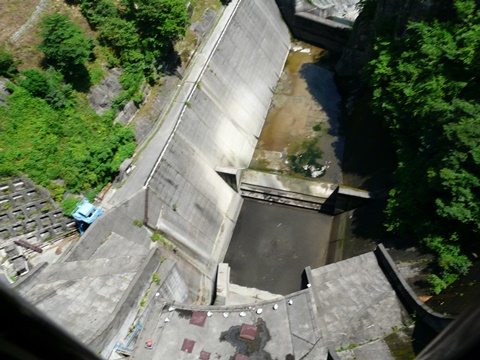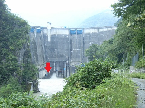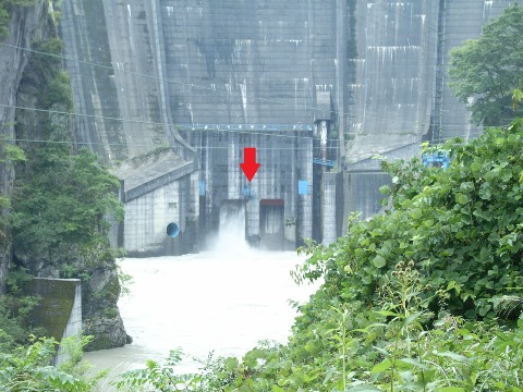 今。 赤矢印の所にいます! ただし!(困) 放水はしてません!(悔) って言うか、放水中だったらツアーは中止になってますけど・・・(困) さて・・・ 一か所だけ・・・ 点検用なのか? 人が3人程度だけ入れる展望スペースがあります! が! かなり錆でボロボロになっているので、ちょっと怖かったりします(怯) そんな所から!!(嬉) おお! なんか久しぶりに見たよ! 二瀬ダムの真正面の景色!! 普段ね・・・ こう言った放水口目線? で、外の様子を見れる機会なんて絶対にありませんからね!! で・・・ 過去に2回。 ココでも、あまりに舞い上がりすぎて!(泣) まともな画像を撮った事が無いんですよね・・・(困) って言うか、恥ずかしすぎるぞ時分!!(泣) なお、試験放水から・・・ たぶん15分は経っていないと思いますが! コンジットゲートに張り付きながら放水を見た時は感動しましたが・・・(焦) 実際には、思いっきし結構小規模なものだったんですね? 何しろ減勢工を超えるだけの水も出てなかったみたいですし! って言うか、本気で放水されてたら(焦) 下流に及ぼす影響が大きすぎますからね(怖) しかも! すでにコンクリートが乾いてるし!(驚) 去年も書きましたが・・・ 実力の10%も出してないんですね! これで!! そして、まだ続く・・・にほんブログ村