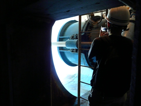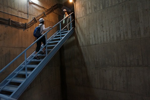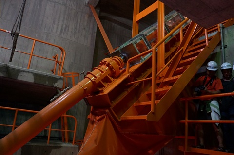 階段を登るとソコは・・・ の? みてんべえツアー2013編 さて・・・ あっさりと説明を流されてしまった最下層。 と・・・ ハウエルパンガーバルブ(涙) その操作室から、再び上の階層に戻ります! で! ソコに待っていたのは!! コンジットゲート再び!(叫) って今度は、動作シリンダーの裏側ですけどね! お! 2年ぶりに、この上に登らせてくれるのか? そう! 掴まっているの、大変だけど!(落) この猿橋子。 登らせてくれるのか? ちょっとチビッ子には無理だけど!(困) 少し期待しちゃうけど・・・ なんか、ここもスルーするっポイ?(困) ちなみに!! この場所で・・・(焦) どうしても、ローアングルから内部を撮りたくなってしまうのが同業者の性?(笑) 一般の人は・・・ 何してるんだろ? この人・・・(怯) みたいな冷たい視線を向けてたりしますが(笑) が!!(困) やっぱしさ! どうしても、この角度から下の方を撮らないといけないような気がする? って言うか、自然と体が動いて・・・ 勝手に画像を撮っていたりする!(困) この位置で画像を撮るかどうかで? こちら側の人かどうか?(笑) が決まる!!(叫) かもしれない・・・?(笑) なお余談ですが! 数年おきに塗装し直されるコンジットゲート! 何度も上から塗り直して! 塗膜を張る事によって錆を防止しています! 錆びて腐食が進んだ場合。 2度と造りなおす事の出来ないコンジットゲート。 メンテナンスに掛かるお金も大変そうです! で・・・ ちょっと驚いたのが!(凄) 去年。 2台とも一気に塗り直した際! なんと! ダムなどでは、あまり使われることのない? フッ素系塗料で塗り直しています!(下地はエポキシ系) 汚れが付きづらい「フッ素系塗料」 だから、1年半経っても! 何度も放水しているはずなのに、色が綺麗なままなんですね? とは言え・・・ 意外と耐摩耗性は低いですからね!(困) 表面の塗膜が削れてくると、痛み気が一気に来る可能性もありますが・・・ 結構、この手のゲートは・・・ ラバッスクなどのゴム系塗料(船舶の仕上げ塗装用)を使う事が多いんですけどね! フッ素系塗料を使っているのは初めて見ましたよ!(驚) と・・・ ちょっと関係のない場所で、ちょっとだけ感動? そして次回! とりあえず! おお! この景色は!!(感) なんか物凄く久々に眺めるシーン! そして、あんな事になっていたとは!(驚) と言う感動へ向かって?にほんブログ村