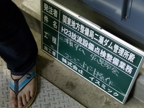 リメンバー・みてんべえツアー2011編 この年は! ま、何にせよ! 見学箇所が減ってしまったのは残念ですが(悔) でも! まさか!!(驚) って言うか、何? この黒板!!! 自分も・・・ まあ最近は、やりませんが! お役所絡みの仕事をする時。 って言うか、仙台で被災した時も・・・ 下水処理場で、この手の黒板を持ちながら! コンベア解体しおわったら地震が来ちゃった(泣) って、状態になったんでした・・・(焦) と言う話は置いといて! このときは、まだ塗り直される前のコンジットゲート! かなり色が褪せています(涙) でも・・・ なんか妙に格好いい! って言うか、地球外で使われている機械のよう? で!(驚) 聞いてないよ!!(叫) まさかの放水!! この年は! 結構上の方から! しかも!!(叫) 2つあるゲート! 両方とも放水!!(凄) ツイン放水!!(叫) って言うか、ダブル放水!! って、意味同じやんか!!(笑) もう、右に行ったり左に行ったり! そりゃあもう!(夢) もう大騒ぎでした!!(笑) 出来ればね・・・ もう一度、この角度から見学したいよね? そして、この時は・・・ 同業者の人達がイッパイ!(笑) 事前に関係者から「放水するよ」と内通を貰っていたみたいで!!(凄) もう、そりゃ! ガブリ付状態!!(笑) 自分も勢いで? ハアハアしまくり!!(困) とにかく! 2011年は、この放水だけが! って言うか、放水のためにあったともいえる「みてんべえツアー」!!(魂叫) もちろん! NPO森さんが造った、地元産の間伐材で造った炭も貰って帰りました。 なお、今日から右肩の出術のため入院します! 問題なく事が進めば、金曜の夕方には病院を追い出される。 じゃなくて退院します。 去年みたいに・・・ 熱が38.2℃もあるのに気付かずに歩行訓練していたとか! 看護士さんがあきれ顔で観ている中、熱があっても・・・ しっかりと昼食&夕食を全部食べちゃったとか!(唖) そういうハプニングが無ければ、金曜日には帰ってきます! と言う事で? 次回は土曜日・更新の予定! で! 2012年は省略して!(困) みてんべえツアー2013編 スタートします! でも、しばらくは1日1回更新かも?にほんブログ村