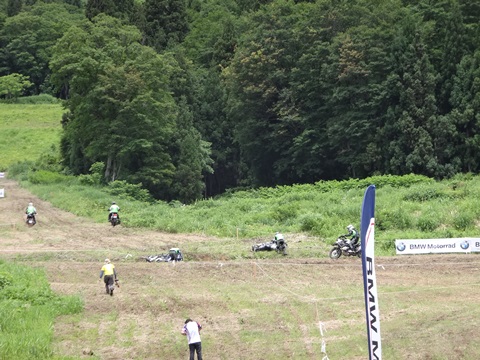 1次予選のエンデューロが開始されてから数分後! 最初に、この付近で転倒者が続出します!(泣) ほぼ垂直に曲がるコーナー! しかも、水平の場所から一気に急こう配に入る! なのに! ちょっとした溝があって!!(困) ここで躊躇したり、ラインを間違えると転倒してしまうんです!(涙) で・す・が! この1次予選は! レスキュー禁止! 何度転んでも、自力でバイクを起こして再スタートしなければいけません!! ただし! 参加者が助けに行く事はOK! だけど・・・(困) GSトロフィー・インターナショナル参加権。 たった3枚のチケットをゲットするため!! 他人を助けている余裕なんてないです!(涙) ライバルを蹴落としてまで? プラチナチケットを、自分の力でゲットしなければならないんですから!! だから!(泣) 転んだら、最後まで何度でも自分でバイクを起こして走らないといけません! しかも・・・ 物凄く暑くなった当日。 あまり転倒しすぎて、バイクを起こすのに体力を消耗すると・・・(困) 脱水症状や熱中症に罹る危険性もありますから!(怖) なお、GSトロフィー・インターナショナルとは! 約10日間。 南アフリカとか、南米とかの砂漠地帯をで開催される過酷な・・・ GS乗り世界一を決定するためのレース そんな素晴らしいレースに! 日本代表として!! タダで連れて行ってくれるんですから! なんと!(驚) バイクも支給してくれるし! 着るモノも支給される! もう、これ以上ないと言う! 物凄い経験をさせてもらえるそうです! そのためにも! 他人を助けてる余裕がある様な人が居たら! って言うか、逆に、そんな人が居たら確実に日本代表になっているでしょうけど? なお! 元・参加者曰く・・・ 日本に帰ってきてから1週間は廃人と化してました って言うか、あまりに凄すぎて・・・ 現実に世界に還って来れなくなると言うか? とにかくスゴイらしい! そんな経験をタダでさせて貰える! だけど!(叫) 普通の人は・・・ 約半月間、会社などを休むことになりますから・・・ 帰って来たら、自分の机と椅子が無かった(泣) なんて事になる危険性もありますが!!(困) それなりの覚悟で、連れて行ってもらわなければなりませんけど!! そして、最初のスタート地点に戻ってくる! しかも急坂を一気に下って来る!! って言うか、減速しきれなかったら!(泣) 観客に突っ込むぞ!!(怖) よそ見してて大丈夫なのか? 観客の人!!(怖) でも! ココに参加する人は! それなりのレベルの猛者ばかりですからね! ここで転んだり、オーバーランする人は1人もいません!(凄) とにかく! 10周走る事目指して、突き進むんです!!にほんブログ村