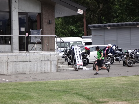 まだ苦難は続く? GSトロフィー・ジャパン2013編 完全に「ぶっちぎり」状態でトレイルランニングに入ったトップの人!(凄) まだ他の人が周回を重ねている横を一人・・・ アレ・・・(焦) 走って登るのかよ? 大丈夫なのか? ペース配分間違ってないか??(困) しかも、水筒とか持って行ってないぞ!(焦) ちなみに途中に水を補給できる場所はありません! ちょっと天気が怪しくなってきたとはいえ・・・ かなり暑いです! 今年で8回目となるGSトロフィージャパン(2011年までは、GSチャレンジの名称で開催されていました) 史上最高の温度の中! 1次予選は続けられています! なお・・・ 途中で熱中症等でダウンした場合は、レスキューが入ります! でも・・・ あの山の斜面。 どうやって救助に行くのか?(困) ちょっと心配だったぞ! ちなみに! 主催者曰く! たった800mですから! (直線距離で800ですから!) 実際は・・・ 後半セクションは九十九折になっていたり!(もちろん直登してもOK) コースが曲がっていたり、そして勾配も変わるので! もっと長い距離がある!(泣) って言うか! やっぱし鬼だね!!(怯) そのうちに・・・ 次々と10周の規定集回数を終えた人達が、トレイルランニングに入って行きます! いや、でもさ!(焦) 杖は止めた方が良いと思うぞ・・・ 確かに作戦としては良いのかもしれませんが? そして最新の登山では!(驚) 「ストックを持って登る方が良い」と! 下手すればツインストック(両手に杖を持って)で登る事を勧めている人たちもいる。 自分たちは、杖は絶対に使わないように! バランスを崩すだけでなく(焦) 上半身を使う事によって、余計な体力を消耗するから絶対に使ってはいけない! そう教わって来たんですけどね! それが今では、考え方が全く変わってしまっていると言うか!! でも・・・ 自分は今でも、杖は使わない方が良いと思っています! 相当な訓練を積まない限り! 逆に邪魔になるし、動きに制限が出るし、体力を激しく消耗するし!! 特に後半・・・ 激しい急こう配が待っている、このトレイルランニング! 杖は確実に邪魔になるぞ! ま・・・ 全てコレらは自己責任のもとで走るわけですから? とは言え・・・ なお、後の方になって来ると・・・ 着替える時間を惜しむ人。 または着替えの準備をしていなかった人など! 今度はオフロードブーツのままでトレイルランニングに入る人も!(唖) いや! 確かにガエルネのED-Proとかさ! 軟らかいから走ろうと思えば走れるけどね! 基本的に、オフロードブーツは、自分の脚で走るために設計されてませんから!!(泣) 靴擦れとか、マメとか(特に下り)、いろんな問題が出る危険性も!! でも! 実際のGSトロフィー・インターナショナルは! 着替えなんて許してくれませんからね!(泣) それを想定して! 単なる結果だけでなく! 現実を見据えて! オフロードブーツ履いたまま走る! 既に頭の中は、世界に向かっている人達の姿もあったりして!!(凄) でも、そんな中・・・ ああ、まだ渋滞してる・・・(涙) トップ10人がチェックを受け・・・ 残された制限時間は10分を切ったと言うのに!!(焦)にほんブログ村