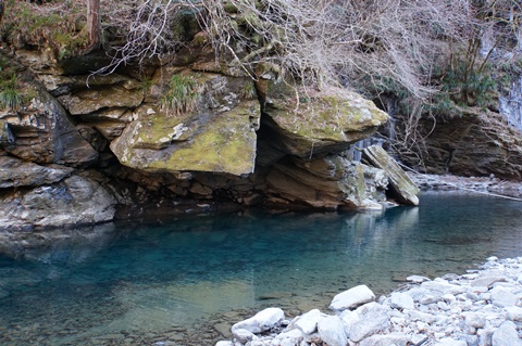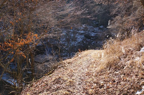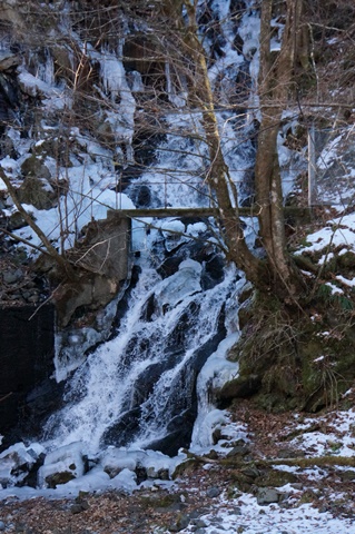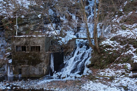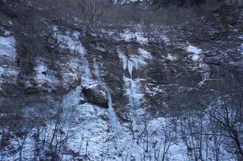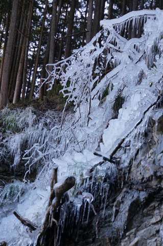 って、アレ?(焦) なんで突然のように景色が変わったの??(謎) と思う方もいらっしゃるかと思いますが・・・ 単なる引っ張りです! じゃなくて! 春先から夏場にかけては、こんな景色なんですよ! ココ・・・ って、単に? 去年、大血川林道2013編用に、画像を撮っておきながら・・・ あまりに、他のネタを引っ張りすぎて(困) ついに、使う事無く年が明けてしまったので・・・(涙) 半分、お蔵入りしかけている画像を使ってみたかっただけというか?? 冬枯れの季節で、周りの葉っぱが無くなると! ここまで景色が変わるんですね!(凄) だから自分は、この時期が好きなんですよ! 何しろ・・・ 色々見えちゃいますから!!(涎) ねえ? なんか見えてますよね・・・ これが、葉っぱの茂っている季節だと!! 肝心なモノが隠れてしまい・・・ 下手すると、美味しいモノを見逃して帰ってしまう危険性が高いんですよ!!(困) さあ! 目指しますよ! あの発電施設跡を!! 想像していたよりも、凍結していないことが!(悔) この時点で判ってしまったので!(涙) かなりトーンダウンしてしまっていますが・・・ でも! このために、ココに来たのですから! 本来なら・・・ 滝が全面凍結とか! そういうのを期待していたのですが・・・ さすがに、そこまでは甘くなかった! でも! ココの自然の氷柱の姿! とくと、ご覧頂こう?にほんブログ村