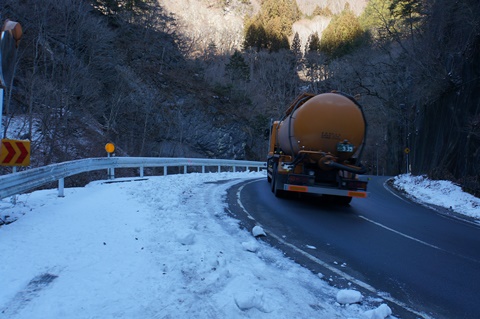 2014秩父・氷柱プロジェクト Part3 中津川の氷壁編 去年。 厳寒期にもかかわらず・・・(困) 三十槌の氷柱、そして完全凍結した二瀬ダムに立ち寄った後! 午後の凍結が始まる前に! 強襲作戦に出た中津川の氷壁! ですが! 昼過ぎから風向きが変わり! 沢沿いの降ろしの風が! しかも、かなりの強風となって!! 予想よりも早い時間に路面凍結が始まってしまったため!(怖) 速攻で撤退して帰ってきた思い出がある。 この中津川。 今回、ココがネックとなるであろうと? 何しろ標高が高いし!!(700m以上ある) だから! ちょうど正午頃。 一番太陽の高い時間帯を狙っての突入を計算していたのでした! が・・・(焦) まさか、大血川で想定外のアイスバーンと!(滑) 発電施設跡と、廃鉱山で、ちょっとハアハアしすぎて!!(困) 到着したのが13時前になってしまっていたりして・・・(焦) でも! 一つだけ忘れていた事があった! 1月の3連休・最終日。 それは月曜日の祝日。 って事は!! 中津川よりも、さらに奥地の! この鉱山が稼働している!!(ちなみに画像は2011年のモノ) そう! だから・・・ ダンプカーと、ホッパー車のために、道路整備がされている!! で! エンジン音を聞いていると良く分るのですが!(怖) この凍結地獄の中津川を!!(唖) ほぼフルスロットルで上がってくる、ダンプカー達!!(凄) 余談ですが・・・ 帰りしなに、後ろに付いて走ってみました・・・ が! あっという間に置いて行かれました!!(泣) こちらは、凍結が怖くて、スピードを出しきれないでいるのに! 向こうは、勝手知ったる地元道!! 見る見る間に離されていってしまい!!(焦) で! 「やっと間が詰まってきた」と思うと・・・ その区間は、凍結している危険性が高いから、わざとスピードを落としている場所ですからね! 追いつこうなんて考えたら、今度は自分がヤバい!!(泣) まあ・・・ なんとも凄い体験をさせていただきました!! と言う話は置いといて!! 去年。 仕事で、ココに来た時は!! この分岐の所に! 中津川の氷壁は、この先 と言った、看板が立っていたのに!! 今年は、何もない!(焦) あれ? もしかして、また始まってないの? と・・・(焦) かなり心配になって来てたりして?? と言うのも! この場所だけは、確実な情報が欲しいから! 事前なweb上で確認を試みたのですが! 何故か1件もヒットしない!(困) ただ単に自分のやり方が悪いだけかもしれませんが・・・ でも! 情報が出て来ない!! あの隧道が呼んでいる(涎) でも、去年のシーズン後の予備調査では! 何の手がかりも得られなかった!(悔) って言うか・・・ この先に行っても、今回は無理っぽい? ちなみに! 林道志賀坂金山線(通称・鉱山道路)の方はと言うと! 鉱山に向かうダンプカーのために、しっかり除雪&塩カル散布がされていて! たぷん、普通に走れるような気がする! 凍結した高山を見に行くのも良いのですが・・・ ダンプが結構頻繁に走っていて!(焦) それと克ち合せになるのだけは絶対に避けたい! 何しろ、退避できる場所も無いですしね!(泣) おそらくダンプ同志は無線で連絡を取り合っているはずですから! そんな問題は起きないでしょうけど・・・ そのリズムが分らずに入り込むと! ホントに涙目状態じゃ済まないような気がしますし!!(怖) で! どうして、こうなった? の次回へ!!にほんブログ村