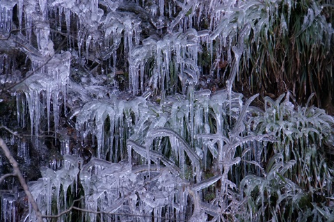 2014秩父・氷柱プロジェクト 番外編 その2 槌打キャンプ場の氷柱編 河原からの急坂を登り切れば!!(叫) ん? なんだコレ??(焦) 今までに見た事のないタイプの氷柱? だよね??(尋) とりあえず、杉の間伐材を1本。 横に倒しておいて! その上から放水する!! そんな形で! 全て人工的に造られたメカ氷柱 じゃなくて! 何と言うか・・・ 創造物? って言ったら格好付けすぎだな?(笑) にしても・・・DSC02610 posted by (C)ちゃのう。 なんだ? このカーテン状の凍結は! にしても結構すごいぞ!! そして! 自然の造り成す芸術と化しているぞ?DSC02614 posted by (C)ちゃのう。 間伐材の枝や葉っぱは、そのままになっているので! それに伝わった水が凍結して、面白い氷柱が出来ている! にしても・・・(焦)DSC02617 posted by (C)ちゃのう。 この鱗みたいなものは一体何だ?? どうやったら、こんな風に凍結するんだ?? って、よく観察してみたら! って、近付きたいけど! 足元が凍結していて近付けない!!(悔) 日陰で、イマイチ明るくない、この場所・・・ そんなに視力の良くない自分。 とりあえず、この日は眼鏡をかけて来たけど・・・ やはり、距離的に言って? 良く解からない!!(困) でも! よくよく観察してみたら!! なんと! 農業用? 防獣用のグリーンネット??(焦) それを立てかけておいて! ソコに放水したのか!!(驚) って言うかコレ・・・ アイデア商品? って言うか、考えましたね! このやり方! ちょっと感心してしまいましたよ!DSC02619 posted by (C)ちゃのう。 隠れステージ? ココにあり?? そして!DSC02620 posted by (C)ちゃのう。 向こう側の陽の当たる明るい部分から透過される暖かい光! こうやって見てみると・・・ なかなか良い雰囲気ですね!!(和) もう少し注目されても良いんじゃないか? この場所! そんな気がするのですが!!にほんブログ村