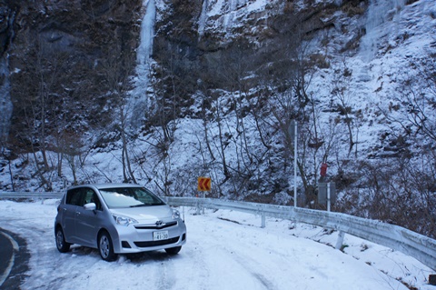2014秩父・氷柱プロジェクト、番外編・その1 凍結の大血川を目指せ編! Part3の中津川に向かう途中。 実は、とある場所に「寄り道」した自分。 まあ、ひさつき氷柱も寄り道だったけど・・・ でも! 今回は! 一応、最初から行程に組んでおいて! しかも! 確実に路面凍結している事が考えられることから・・・(怖) 午前11時を回るタイミングを見計らって山に入る! そう! 時間まで計算しての計画だったりして! って言うか、ここでも強襲計画っぽい? そんな感じ?? 何にせよ! 大血川林道は冬季通行止(涙) とは言え! 途中にある太陽寺までは、お寺の住職さんと・・・ 信仰のある方たちと・・・ そして、資材や食材を運ぶ人たち。 そして電力会社や、水道関連の人達が入るはず! ですから、ソコまでは通行が許可されています! ですが・・・(焦) 1日の通行量なんて、数台もあれば多い方? さらに下流の大血川国際釣り場までは、とりあえず何とかなるかもしれないけど・・・ でも! セーフっぽいけど、ギリギリアウトかもしれない?(怖) そんな路面状況になって位のはず!! とりあえずスタッドレスタイヤ付のレンタカーを借りたとはいえ! やはり他人の車は慣れていないだけに、辛いモノが! しかも!(困) 貸してくれたのがラクティスと言う・・・(激困) とにかくです! こんな車、絶対に買ってはいけない! と、心底思うような(涙) まあ・・・ ヴィッツのシャーシに、無理やり大口径ホイールと扁平タイヤなんて履かせたら! そりゃ、バランスが崩れて(捩) まともに走らない車が出来るのは確実!! しかも! 接地感と、操舵感の希薄な電動パワステの組み合わせは! 車体と、タイヤが別々に動いている様子が腰と腕を通じてモロに判る!!(怖) サスペンションのゴムブッシュがフニャフニャにくせに、タイヤだけ踏ん張ろうとするから! 思ったラインで走れない! って言うか、車体が舟を漕いでいるような揺れ方しているのをモロに感じて! なのにタイヤが、ヘンな方向向いてるのが伝わってくる!!(涙) 最低だね、この車!! なんてモノが当たったしまっのたで!!(爆涙) そりゃあ、もう大変でしたよ!! 確かに、日の当たっている場所は上の画像のように、普通に走れますが! 日陰はアイスバーン!!(叫) 急こう配なので、一旦停まると再発進は不可能に近い!!(怖) そこで急カーブの連続!! とりあえずです! トラクションコントロールとESC(横滑り防止装置)が! オモチャみたいなのでも、付いていたので助かったと言うか・・・ でも、これがまともな車なら! そんな電子制御に頼ることなく、走れたかもしれないのに!! と言う事で・・・ かなりビビりが入りつつ! 平均時速15キロくらいで、やっと登って来ました!(涙) 途中の凍結路面の画像が無いのは・・・ とにかく! 止まったら最後! 再発進が危険だと言う事が解かっていたので! とにかく・・・ 察してください!!(滝涙) さあ! この奥地に何が待っているのか? まあ、冬眠しているはずだから出て来ないと思うけど・・・ クマ避けの鈴を袖に吊るして! 転ぶ事を前提に、手の平の部分に熱いゴムが貼られた手袋と! ホームセンターで298円で売っているヤッケを着こんで探索開始です!(最悪の場合、捨てても良いように) この残雪の地に、何が待っている??にほんブログ村