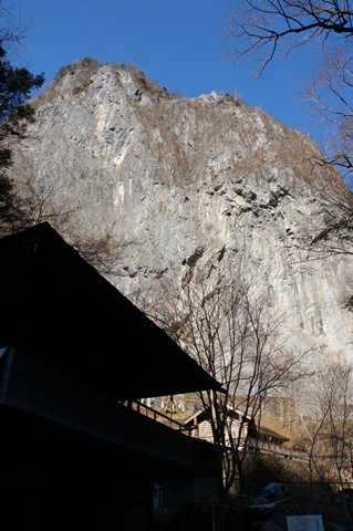 2014・元旦の日原編 崖っぷちの一石山神社と、駐車場(狭) この奥に日原鍾乳洞があるのですが! いやさ!(困) 今更、こんな派手なポスターとかで、臨時休業とか宣伝されても!!(泣) もう、遅かったって!!(涙訴) せめて、バスに乗る前に教えてほしかったな! 奥多摩駅の時点で!!(って、単に自分が見落としただけとも言う) そして!(焦) ついに出来たよ!(泣) バリケード!! とは言え! まだ隙間が開いてるし! それに! 三が日は工事がお休みだから!!(涎) この先に入っても、たぶん・・・ 誰にも怒られない?? でも良い子は真似しないようにしておきましょうね? って、新年早々からモード発動させる気か?(困) でも、まあ! 車は入れないだけで・・・ 徒歩でなら、最深部まで入れるのかもしれない? 鍾乳洞は、とりあえず放置しておいたとしても? って言うか、仮にオープンしていても! 鍾乳洞内部では撮影禁止になっていますからね!(悔) 無理にでもネタのために入りたいとか思わないしね!(涙) そして・・・ 聳え立つ「燕岩」が見えてきました!! 改めて眺めてみるとスゴイよね? とても、ここが東京都とは信じられないよね?(笑) で! あんな巨岩の上から、落石してくるんですからね!!(怯) もちろん?? うわ~ん!!(飛涙) ここで完全封鎖!!(困) しかも! 歩行者通行止の看板まであるよ! その上! どうやっても、隙間からとか・・・ ガードレールの向こう側からとかから入れないようにガードされてる!!(困) 鍾乳洞だけでなく、最深部への進入までもかアウトになるのか? 自分。 本当に、ココに何しに来たのか分らなくなってきたぞ!!にほんブログ村