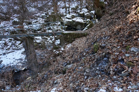 2014・元旦の日原編 聳え立つ燕岩! って、やっぱし引っ張りに入る気だな? そう思った方。 いらっしゃると思いますが・・・ その通りなんですよ!!(困) 鍾乳洞・受付の建物越しに見た燕岩 こうやって見てみると! やっぱし巨大ですよね!!(凄) ちなみに! あんなのが、あと「更にもう2つ」聳え立っているんですよ! 実は!!(唖) でもココは東京都なんですよ!! 聳え立っているのがビルじゃなくて巨岩なんですよ!!(凄) さて、話題を少しだけ戻して・・・ 中には入らないとして・・・ って言うか鍵が閉まっているから入れないけど! でも! 休館日に、敷地内を歩き回ることに背徳を覚えながらも・・・(困) 14年ぶりくらいに? ここまで降りてきてたのですから! 何しろ・・・ 営業日だと、ここまで降りてきたら入場料を払わないといけませんしね!(焦) でも、中で画像とか撮っちゃいけないので(悔) わざわざ、お金を払ってまで入ろうとは思わないし! こういう機会でもないと、中々ゆっくり様子を見れなかったりしますしね? で! ん? なんか・・・ 地無為的に怪しいよね?? って言うか! 昔。 目の前に、もう1本。 橋が無かったっけ? そう・・・ こんな感じで?? もしかして流されちゃったのか? それつも設備の老朽化で、ここも架け替えるのか? ついでに? 古い画像をチェックしていたら!! 8年前のモノが出てきました! あ! やっぱし、なんかヘロヘロの橋が少しだけ写ってるよ!! 旧橋が架かっていたんだ? 一体何があったんだ? まあ・・・ どう見ても、橋の寿命で撤去されちゃったぽいけどね?(涙) って、あ! いけない、いけない!(焦) こんな事をしに来たんじゃなかったな? 短絡路が、まだ使えるか? それを確認しに来たんでした!! さあ次回。 その確認に行くのか? たぶん、もう1回は最低でも引っ張るだろうな?(困)にほんブログ村