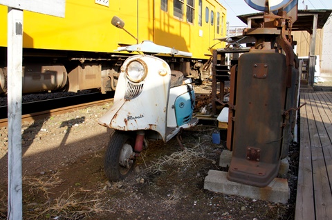 そういえば・・・(焦) 仲ノ町車庫に放置されていたラビットは何処に行ったのでしょう?(焦) コレも、海から来る潮風の影響で? 段々と劣化が進行!(焦) 2007年には、まだ付いていたナンバープレートも外され(泣) バッテリーも撤去され! シートも表皮のビニールが破れて、中のスポンジが飛び出した状態(泣) さらに鉄でできたボディーには、彼方此方に錆が出てきて・・・(焦) って言うか、当時のビクスク(と言う呼び名は、まだ無かったけど)は! 今の安物だけど軽トラ並みの値段がするプラスチックの塊みたいなビクスクと違って!(困) 全て板金で車体を作っていたんですよね!!(凄) で・・・ 豪華になりすぎて! 車体が、どんどん重くなって行って!(苦) 更には製造コストの関係で、車両価格も軽自動車と変わらなくなり!(焦) 終焉の道を歩んだのです!! って、2007年の画像が出てきたので・・・ オマケとして掲載しておきます。 なお! 現代のビクスクも!!(唖) 何? 100万円近いもがあるの?? 250ccでも50万円超えるのが当たり前って何? スクーターなんて30万円以下で、いかに安く造るかか勝負じゃないの? 所詮、国産ビクスクはシティーコミューターなんだから!(欧州製のはコンセプト自体が違うけど) プラスチックの成型部品で! 1グラム何十銭で造られる。 メーカーにとってはマジで儲かるから、おいしすぎるビクスク!(笑) それを60回ローン組んで買う人(爆涙) 世の中。 間違い過ぎてるよね? と言う長い前振りは置いといて! え゛!(硬) 仲ノ町に居ないと思っていたら・・・(焦) こんな所に島流し じゃなかった(焦) 持って来ていたの? でも・・・(滝涙) DSC00283 posted by (C)ちゃのう。 コレに合わせたのか?? とは言え!!(悔) この色は無いだろ!(困) 当時の郵政省が使っていたか? それは知りません! って言うか、自分が物心ついた頃には絶滅寸前になってましたから! でも・・・ 絶対に、こんな色 無かったよね? 業務用なら、スーパーカブ(と、それらしき形状の他メーカー車)とベンリィ(と、それらしき形状の他メーカー車) ある程度の大きさが必要ならCD125とか、その手のバイクが主流だったはずですし!! コンセプトは分るけど・・・ 何となく「やっちまった?」 そんな悲しい姿が!!(涙) 外川駅の駅舎内に繰り広げられていたのでした(涙) なお、明日から3日間。 大阪モーターサイクルショー見学のため! と同時に、色々と京阪津方面のネタ収集のため・・・ 更新は・・・ 現地からの特別編成となります!(時間も不定期) 続きは24日から!!にほんブログ村
