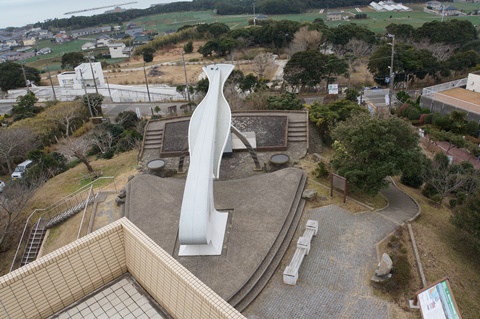 地球の丸く見える展望館には・・・ 友好提携を結んでいるフィリピンの方向に向かって! 巨大なホチキス じゃなくて、巨大なカマキリの象 でもなくて!(焦) 友愛の碑と言う建造物が併設されています。 その先端で鳩が風をよけながら丸くなっている姿が!!(笑) って、やっぱし鳩も寒いんだろうな? 晴れていれば、もっと違うはずなのですが・・・ とは言え! 海水温が気温よりも高い1月。 おかげで、真冬でも都心部なんかよりは暖かかったりするんですよ! 千葉の海沿いって! 余談ですが・・・ 海水温が一番低くなるのは3月から4月にかけてです! それを過ぎると、「乗っ込み」と言われる魚の産卵期に入り! 釣り人は、その時期に竿を出しに行くんですよ! 警戒心が強くなってて、なかなか釣れないけど(困) 良型が出ることが多いので! とは言え、自分・・・ 春磯には、良い思い出が無いですけど・・・ と言う話も置いといて! なんか、いつの間にか白く塗り直されてるし! 以前はコンクリート地剥き出しだったのに!! ちなみに真後ろから見ると・・・ 一体、これが何なのか? 全く分りません!(笑) って言うか実の事を言うと・・・ この建造物のコンセプト自体も良く知りませんけど・・・(困) だけど! 実は物凄く歴史のある(とは言っても戦後の話ですけど)モノなんですね? コレ!! わざわざ当時の総理大臣が名前を刻むほどですから・・・ 落成の時は、街中・・・ いや! 半島中が物凄い大騒ぎになっていたのではないかと?? で! 斜め前から見ると・・・ 意外と格好良いぞ! そして!! その背後に立っている地球の丸く見える展望館。 この建物も・・・ 何かのロボの顔か?(笑) これも、意外と格好良かったりして・・・ とまあ・・・ こんな事をしているうちに、すでに午後に入ってしまったので! 一旦、外川駅に戻ります。にほんブログ村