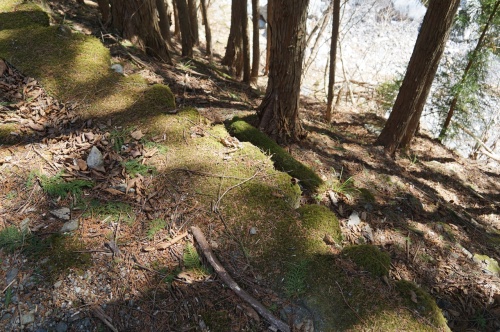 この苔生し方・・・(緑) 良いですよね?(萌) そんん光景も目に付く・・・ (たぶん?)林鉄入川線の路盤跡 そして! 苔生した石垣!!(聳) しかも!(焦) ん? なんか、この場所だけ異様に広い! もしかして! ココに交換所とか・・・ トロッコを留置しておくための操車場があったのか?? あるいは切り出した材木の集積所でもあったのか? だけど! 古い地形図には、そんな物は一切表記されていません! て・・・ まあ林鉄の場合。 伐採する場所なんかにより、色々と変化するので・・・ しかも! こんな山奥。 毎年のように測量調査は入らないから(困) 仮に施設が存在したとしても、面倒だし記載しなくてもOKだよね? って事で、無視されたかもしれません? 明らかに、線路3本分のスペースはあるぞ! 林道として転用された際・・・ どう考えても自動車は通れなかったはず! 当時のオート3輪なら通ったかもしれないけど? それでも、幅が圧倒的に狭いと思える路盤。 だけど! この空間だけ広い。 林道として利用した時代に待避所として広げた可能性も捨てられませんが・・・ 間違いなく、ココには何かがあったはず! って・・・ 思っていた以上に色々と出てきたぞ! こんなものが、国道140号線の崖下に隠れていたとは!(悶) ただし! 50年以上前に廃止され・・・ 林道として再整備されてしまっているので(泣) 当時の事がハッキシと解るような証拠が見つけられない!!(悔) 更にがけ下をのぞき込んでみても! くっ!(噛) これで廃レールとか落ちてたら、最高だったのにな!(悔) あるいは、何かの建造物の基礎部分だけでも残っていれば!! とにかくです! まだ先に路盤は続いています。 悶! って言うか、良い感じすぎる! もう(悔) ココに廃レールとか、廃枕木が残っていないことがマジで悔やまれるけど! どう見たってコレ! 林鉄の風景丸出しの路盤だよ!(ハアハア) ところどころ・・・ 雨が降ると沢になっちゃう筋の部分が、補強工事を請けちゃっているけど! って言うか? あまりに崩れやすいから(困) 完全にレールも撤去して? そして路盤の改質までしちゃったのでしょうけど? まだ先に路盤は続いている! このカーブとか。 建設費を安くするため・・・ 可能な限り、等高線に沿って! 地形に沿って線路を敷いていく林鉄のパターン! 無駄にお金のかかる隧道とか、橋梁は極力避けるのが定番! だから、直線区間が殆どなく(焦) グニャグニャと曲がった路盤が続いてしまうんですよ! なんて思っていたのですが・・・ しまっ! まさか、こんなに長く続いているとは想定外だったぞ!(困) 国道140号線の旧道区間まで200m程度だから・・・ 路盤は50m程度の所で姿を消すと踏んで入り込んだのですが! コレ。 もしかして長丁場になるのかも? と、ちょっと不安になり始めた頃。 まさかの物が!! そう。 まさか「アレ」が存在していたんて! 聞いてなかったぞ! さて。 その「アレ」とは一体?にほんブログ村