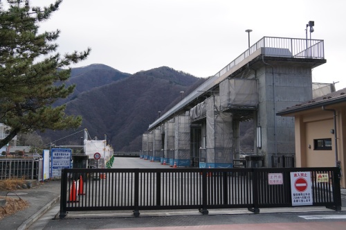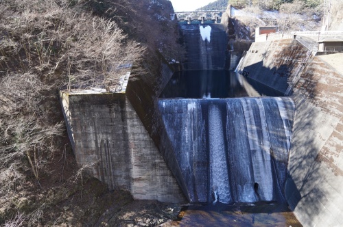 今年1年間引っ張るシリーズと予告した・・・(困) 例の小河内ダム・索道跡関連の続編。 って言うか、サクサク進ませないと年内に終わらない危険性が!(焦) 特に! 後から資料を漁っていて、新たに気づいたことも多いので(泣) 今年後半には、改めて確認に入っちゃう可能性も高い・・・ ので・・・ 想像以上に長くなる可能性がある(困) と言う事で。 天気のいい日に、部屋の窓を開け! 自分が生まれる前に発行された東京都水道局の資料と睨めっこしながら(泣) って言うか、古い本独特の匂いと、カビのせいで!(泣) 鼻水止まらなくなるんですよ!(滝) たまに天日干ししているんですけどね・・・ それでも、なかなか匂いが消えなくて(涙) そんな中で続ける・・・ 勘違いだらけの小河内ダム・索道跡探索編 今日からスタート! だけど、初日は「引っ張り回」に徹する なお、小河内ダムの余水吐は耐震補強工事が現在進行中です。 その内容が物凄いというか?(笑) 詳しい内容は別途。 後日にするとして・・・ なんと! コンクリート製の橋が乗っているだけの構造だったらしい余水吐の上を通る橋。 それを・・・ 仮に地震が来て、外れちゃっても橋台から落ちないようにチェーンで繋ぐ! と言う・・・(焦) た、確かに耐震補強かもしれないけど! 落ちる(壊れる)こと前提で工事するのね?(笑) ただ! 完全に落ちて、引っ張り上げるのが大変なことにならないよう! 多少はズレるかもしれないけど、端っこのチェーンでぶら下がって耐えてるようにするって事(汗) なんか複雑な気分? で・・・ 工事用の足場もチェーンで吊っておくとか!(笑) なんか見てて、ちょっと怖いぞコレ!!(怯) まあ、一度に大量の人が乗るわけではないので・・・ これで耐えれるのでしょうけど? 結構揺れそうだぞ、この足場(怖) と言う光景を眺めながら・・・ って、ココでもついハアハアして画像撮りまくった事が後で悲劇につながるとは(泣崩) この時点では、まだ想像すらしていなかった自分だったりします。 そう。 ココに来る前に、西久保発電所跡で猿に囲まれたりしながら・・・ 画像を、かなり撮ってしまった事も、さらに追い打ちをかけているんですけどね。 それと! (去年の)12月末と言う時期の気温を考えれば・・・ この後、何が起こるのか? 想像するのは容易な事とおもいますが・・・ 小河内ダムの管理事務所 こちらも、耐震補強工事でメカ管理事務所となりました じゃなかった。 パワード管理事務所 じゃなくて! まあ、そんな事は今回は関係ないから置いといて! この管理事務所の裏に当たる場所に。 原石山の跡が、少しだけ残っています。 って言うか、建設が始まった当初は・・・ 今、画像を撮っている場所も・・・ 管理事務所も含め! 全て山でした。 が・・・ 削られて、原石山はダムの堤体に「美味しくいただきました」された って言うか、コンクリートの材料として使ってしまいました。 で? 何故に、この部分だけ残ったのかと言うと!! そう! この山の上に、小河内ダム建造時に使われていた25tクレーンの移動塔が2機。 線路の上を動いていたから(萌) ハアハア 想像しただけで萌える!!(悶) あの上に線路が!! くっ! 今は上に行けなくなってしまったので! 一体どうなっているのか? そして・・・ レールの跡とか残っていないのか? マジで気になる!(悔) そして対岸(右岸)は! 実は、いくつかの資料と写真があって!(焦) それが色々な勘違いを引き起こす原因となっていたのですが!(泣) と言う事で概略? 赤線の位置。 今の展望広場の位置に線路が敷かれ。 ココに25tクレーンの移動式エンジンタワー2機が設置されていたと勘違いしていました。 設計計画地図だと、この位置とも読める描き方だったので・・・ しかも! 右岸の写真って、意外と少ないんですよ(困) で・・・ やっと見つけたものには!(焦) なんと!(困) 右岸の広場。 現在の供養塔が建っている付近の広場。 ちょうど青線の位置です 何が無駄に広いから不思議に思っていたけど! ココに巨大な移動式エンジンタワー2機が写った写真が!! って、図面読み違えてた!(涙) なのに・・(困) なんと! このシリーズを再開しようと、鼻水のくしゃみに耐えながら開いた史資料の表紙に! 竣工時の写真が!(焦) なんと! 撤去される前の25tクレーンの移動式エンジンタワー2機。 数年前まで、右岸広場の公衆トイレがあった小高い場所に移設されてる! しかも・・・ 移動距離が短くなって ちなみに自分は当初。 そのさらに上の場所に石垣を発見したので! ココが索道(クレーン)の設置場所と思い込んでいたんですけどね・・・(困) もしかしたら、ココにも何かがあったのかもしれないけど! 資料と写真が一切写っていない(困) いや。 非公開の物があるかもしれないけど! って、以前に・・・ このブログのおかげで知り合った。 祖父が、小河内ダム建設時の公式カメラマンだったという人なら持っているのかもしれませんが!! 今は連絡が全く取れなくなってしまったので(滝涙) 謎だけが残っています。 とりあえず今回は・・・ 