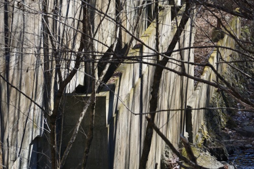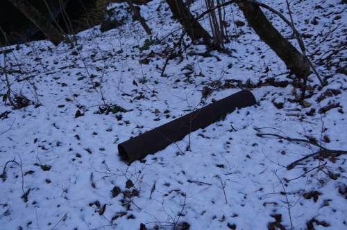 水根駅跡とベルトコンベアの位置編・ファイナル! 何か落ちてる! って言うか、かなり古い感じのパイプが! しかも・・・ 良い感じに熟成が進んでいる(笑) コレも現役当時の物なのか? あと余談ですが! 足元。 雪が隠れてますが・・・ 色々と転がっています! しかも、枯葉とか枯れ枝が積もった上に雪が乗っていますから!(怖) トラップだらけの斜面。 良い子は絶対に真似しないようにしましょうね!(願) しかも! 地下水道を通って来る水根沢 もう、雰囲気出まくり! とか言っている矢先に転びました!(痛) マジで危ないぞ! ココ・・・(泣) 沢に落ちたら・・・ 季節が季節だけに、あまりシャレにならない展開な成りますし!!(濡) おお! 良い感じに近づいてきましたね!! なお・・・ 手前の2つの区画は、最初から埋められていたよあですが・・・ 元々は、すべて穴が開いていて・・・ 高架下のような感じの光景が広がっていたはずの、この場所。 内部は、一体どういう構造になっていたのでしょうね?? でも、よく見ると・・・ さすがに半世紀以上が経って! コンクリートの劣化が始まっていますね?(涙) そう簡単に崩れることはないでしょうけど・・・ それにしても、改めて眺めてみると迫力あるよね? と・・・ 見惚れていて! 更に1回。 雪の下に隠れていた石を踏んで転びました!(滝涙) くっ! マジで怖いぞ、ココ! って言うか、水根駅跡に気を取られていると足元取られるぞ! ココ!(困) 更に!(泣) 奥の方に進もうとして・・・ 正面の倒木を跨いで超えた時! 倒木に手を着いたタイミングで! 足元が崩れて・・・(泣崩) それ以前に、傾斜が思ったよりも急で! 立っているのも、結構つらかったりするぞ。 ココ!(困) くっ! 色々とコンクリート片が落ちていて! その、どれかか? もしかしたら? ベルトコンベアの基礎部分に使われていたかもしれないのに! 足元が危なすぎて、チェックしている余裕がありません!!(泣) しかも!(怖) その辺に落ちている枯れ枝を踏むと、バキバキに折れて砕けるので! で・・・ ずるっ! っと滑る事になるので!(怖) これ以上の進行が困難です!!(泣) とは言え! 見えた!(叫) こういう時・・・ 周りの木の葉っぱが落ちていて・・・ 雪が表面に乗っていると判りやすくて便利ですよね! ただし・・・ 自分の身に対する危険度が半端ないですけど!(困) でも! 真っすぐ1本。 このラインだ! 方角から言っても、間違いなく? この直線上をベルトコンベアが通っていたのは間違いないはず? 後は、この向きに強引に攀じ登って行こ・・・ うとしたのですが!(泣) 足元が、あまりにもフカフカすぎて! 途中で2回転んで!(泣) って言うか、歳を取って足が上がらなくなってきたのか自分?(泣崩) こんな角度・・・ 普通に登れていたような気がするんですけど、昔は・・・ ですが! 降りる前。 大体の予想を付けた、この方角は間違っていなかった! で・・・ いたよ! コンクリートの基礎! たぶん、ココにベルトコンベアの脚が建っていたはず!! そして、その奥には! たぶん? 排水用の水路として利用されているはずの! 穴が! ぐはっ! 枯れ藪が濃すぎて、これ以上前に進めない!(泣) 鉈でも持ってきて! 刈り払わないと進めない!(困) でも! そう。(困) ココは国定公園。 許可なく、草木を切る事は禁じられています。 更に! 鉈とか持ち歩いていたら銃刀法違反(刃渡りが規制に引っかかる)になってしまうので!!(罪) くっ!(噛) 目的地は、後3mくらい先。 ほんの目と鼻の先なのに!!(悔) なんてこった!(涙) コレ以上進めない。 彼藪が、簡単に折れるような植物なら強行突破しようとしたけど・・・ 意外と粘り気が強くて、弾力性があって! 無理・・・(困) くっ! 今シーズン。 また台風とか来て、藪が飛ばされてくれないかな? あるいは! たまには、藪を刈るとか整備しようよ東京都!(願) でも、大体の位置は判った! とりあえず、今回は・・・ これで勝ったと思うなよ!(逃) にほんブログ村