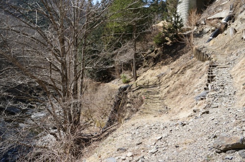 ん? 川又の水位観測所の所で!(焦) 路盤が変な方向に曲がってる!! って言うか、間違っても「こんな急角度」 曲がる事なんで出来ないぞ!!(焦) う~ん・・・ もしかして? この付近。 路盤ごと崩落して地形が変わってしまったのか?(怖) あるいは・・・ 水位観測所を造る時に、削ってしまったのか? 何にせよ? こんな? 取って付けたような遊歩道? が造られているんですけど!! この幅。 軌道跡としては狭すぎる! 完全に、人が歩くための道として整備され直している(泣) 眼下には、水位観測所の下に行くための管理道(階段)が造られたいたりする。 でも! 地形を弄ったような気配はない気がする?? う~ん? ココで一体何があったのか??(焦) しかも!! もしかして遊歩道? 林道化した後。 一時的に? 観光用に転用したのか? 普通に、人が歩いていた時期があるのか? それとも。 水位観測所、および河川管理をする国土交通省が管理道として整備したのか? でも・・・ どう見たって! この造り。 遊歩道だよね? そして!!(泣) こんな場所を林鉄が通っていたなんてことは絶対にないよね?(涙) いや? 無理やり、木橋とか架けていたかもしれないけど?? 物凄く気になるけど!(焦) ついでだから? 水位観測所の方もチェックしてみよう・・・ 昨日も書きましたが! ここで測定されたデータがリアルタイムで二瀬ダムの管理事務所に届きます 国土交通省の川の管理(web)なんかでも、情報が公開されていたりします!(驚) まあ。 台風来た時とかは! いつダムが放水するか(ワクワク) この辺りのデータを観ていると、ある程度の予測が!(笑) で・・・ 国土交通省管理のダムは! 放水している量も表示してくれますからね! ぶっ放しているかどうか(踊) 一発で判ったりするんですよね(嬉) って、事は今回はどうでも良いから置いといて!! なんと!(驚) この水位観測所。 造られたのは昭和35年 もう、57年前 二瀬ダムの竣工よりも1年早い! なお「竣工」と言うのは、使用開始をした年の事ですから。 完全に使用開始する前に、試用段階の時に水位観測所が完成していても、おかしくないですからね! って言うか、こういう設備が先に造られていないと、ダムも本来の仕事ができませんから!(困) あと余談ですが・・・ あの鉱山道路編で出てくる、鉱山が最盛期だった頃。 完成してするんですよ! その当時から・・・ 何度か更新されているかもしれないけど? この遊歩道か管理道か不明なルートが造られていたのではないかと? で? 林鉄の方は・・・ この付近を一体どうやって通っていたのか? う~ん・・・ やっぱし地図欲しい!!(願) つづく。にほんブログ村