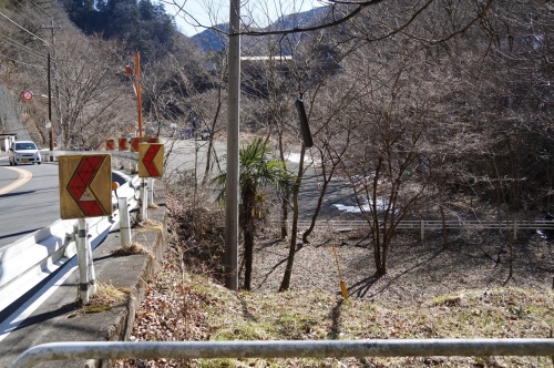 そう。 時は・・・(焦) とにかくです! 時系列と言う言葉がぞんざいしない世界(困) ソレが、このブログ。 何故か? 更に過去に退行しているぞ? 時は! 今年の2月12日。 例の? 小河内ダムの資料を見ていて! 確認したくなった箇所の調査を2回行った後! そう。 その第2節まで書いていた時の事でした。 水根駅から出たベルトコンベアの位置を勘違いしていたことに気付いた自分。(困) どうしても、その間違っていた部分の確認に行きたくなってしまい・・・ この番外編が始まってしまう訳ですよ! まあ、とにかく! 前の週に雪降ったし!(奥多摩町では) それに、まだ寒い時期(凍) でも、この時期を逃すと藪が育っちゃうから!(困) 確認に行けるのがも早くて年末。 下手すると来年になっちゃうので! ハアハア・・・ もうちょっと雪が残っている時に来たかったな!(悔) ハアハア・・・ って、関係ないけど? 洪水吐が凍っている姿で興奮していた自分。 危うく、この日の目的を忘れて帰る所だった(焦) なんて事があったりしたけど・・・ とりあえずです! 前回のあらすじ。 そう! 戦前。 小河内ダムの建造工事が始まった頃。 作業道は!! 画像の赤線の場所を通っていたということが判った! って言うか、洪水吐が造られるのは・・・ 完成間近になってからですからね。 まだ、その当時は計画図はあったかもしれないけど? 姿形もなかったし! この形に山も削っていなかったんです! あと余談ですが・・・ 当時。 今みたいに解析ソフトやスーパーコンピューターを使用して! 洪水吐の水の流れや、効率よく放水する形状を機械が理論値を出してくなかった時代。 なんと! 幾つもの精密な模型を作って、そこに水を流して何度もテストして! この形を造ったらしい!(凄) とにかく! 物凄い時間と知恵を使った結晶が、この洪水吐なんです!!(神) って話は、今回は関係ないなら置いといて! 都営・水根駐車場(無料) 実はココ! 小河内ダムを建造していた時は、セメントサイロが立ち並んでいた場所でした! 写真を見る限り! なんと!(驚) エアー圧でセメント材料を押し上げてサイロに投入していたらしい? そして、サイロの横には・・・ 大きなコンプレッサー室も併設されていたんです! で・・・ 実は、この駐車場。 ダムが完成した後。 セメントサイロを撤去した後に土盛りして! 現在の高さになっています。 で・・・ サイロが建っている時の写真と・・・ 周囲の道路と地面の標高差が、現在とあまりに違っているので! ベルトコンベアの位置とか。 実は勘違いしていたとこも発覚! この看板付近に、コンプレッサー室があったッポイ? と言っても、標高で10mくらい低い位置に! 何しろ! サイロと、コンプレッサー室は! 水根駅と同じ高さにあったらしい。 って言うか、平らで地続きだったらしい? その辺りの写真を解析するのに、ちょっと手間取ってしまっていた(困) ヘンな話なのですが? 画像の・・・ 国道411号線の外側にあるガードブロック(縁石)が・・・ 建設当時からあった物らしい? で! 歩道を挟んで右側の石垣が! 小河内ダム完成後に土盛りして造られ・・・ ソコに駐車場が造られたらしいんです! いや? コレが当初の予定通り・・・ 西武鉄道が水根専用線を買い取って、観光路線にしていたら! この場所は、公園か? あるいは売店か何かになっていたかもしれない?? そして・・・ 歩道を終点まで下っていくと! 眼下に水根駅跡が見えてくるのですが・・・ 今立っている場所には! 駅と同じ高さのままで、線路が伸びていき! バラセメントの袋を破袋するための作業小屋へと入っていったらしい! 現在とは、全く違った地形となっていたことが判明!(驚) で・・・ その辺りに気付くまで! この付近の配置を色々と勘違いしていて(困) ベルトコンベアの位置を勘違いしいたんですよ!(泣) と言う事で? 水根駅跡とベルトコンベアの位置編 今日からスタートです!にほんブログ村