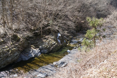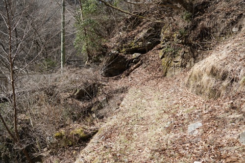 水根駅跡とベルトコンベア跡編 って、サブタイ・・・ もう、適当に書いてる気がするのはなぜ? まあ・・・ 以前の調査で既に分かっていたことですが!(泣) 何故に海の向こうの大陸にいるパツキンのオジサンが壁を じゃなくて、あんな所にコンクリートの壁造ったかな?(困) まだ・・・ 普通に埋めたのなら、諦めが付くけど・・・ 壁の向こうに、しっかりと穴が開いてるしね? って言うか、何か再利用することを前提に? 壁を建てて、穴は塞がなかったのか? 画像だと判らないけど・・・(悔) じつは、内部の空間がファインダー越しに見えてたりするんですよね!!(困) って言うかベルトコンベアは無くなったけど! 地下の空間は当時のまま残っている? いや? (焦) もしかして・・・ 西武鉄道が買い取って、観光鉄道にした後は! 駅のホームから、階段で地下に降りて! ベルトコンベアの跡地に、連絡通路の階段を架ける予定だったのか? 地下に改札口や出札所を造る気だったのか? で・・・ 穴。 残しておいたのか? だけど! 計画が凍結してしまったので(泣) 埋め戻すのではなく・・・ 壁を造って、中に入れなくしたのか? この辺りの情報は、全く入手できてないんですよね!!(涙) って! また、新しい資料をゲットするために出費が嵩んでいきそうな気配が!(困) そして! ベルトコンベアが出ていたと思われる方向 その対角線上を見上げると!! 何となく? 画像中央付近に真っすぐと伸びていたのではないかと? 問題は・・・(焦) 正面の枯れ藪だな?(茂) 葉っぱが生えている時期じゃないし! 枯れているから、折れば何とかなるだろうけど? ガサガサと藪漕ぎしていたら・・・ 上を通っている人に確実に見つかる!(焦) 駐在さんも、すぐ近くにいますからね! しかも!!(困) ココは国定公園内。 生えている植物を勝手に切ったりすることは禁止されています(泣) アレをクリアするのは、ちょっと厳しそうだぞ? だけど・・・ そう。 何となくなんだけど・・・ 今日は、崖下に降りれちゃうような気がする? 良い子は絶対に真似しちゃいけないけど! って言うか、今立っている位置に入る事も止めましょうね! もしかしたら、本当に怒られるかもしれませんし(滝汗) だけど! あの壁の正面から見れば! もしかしたら、道筋が見えるかもしれない? 更に運が良ければ? ベルトコンベア脚の基礎が残っているかもしれない? って事は! 正確な方向がつかめるかもしけれない? ただし・・・ 行く手を阻む水根沢(困) ここは渡れない(悔) だけど、対岸の対角線上に位置する事さえできれば!! さあ・・・ 少しずつ、前に進もうか? そして! 振り返ってみよう? と言って、あと何日引っ張る気なのだろうか?(笑)にほんブログ村