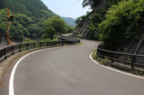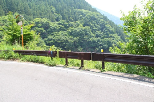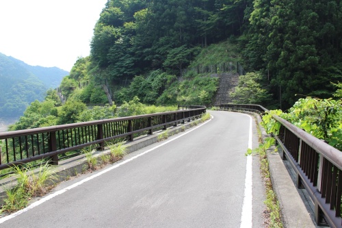 塩沢橋の正面・・・ そして側面! この2方向から見る事が出来たのなら! そう・・・ 今度は背面から見てみたくなるよね? と言う事で! 見えそうな位置を・・・ と思ったのですが!(困) 右岸道路。 肝心なところで、大きくカーブしていて!(焦) 背後に回り込める位置まで進めそうにない!(泣) と言う事で? カーブの突端の所から、下の様子を・・・ って! なんと!! 一番肝心な場所を隠すように藪が!!(困) 色々と位置を変え! 姿勢を変え! ギリギリなんとか? やったけど・・・(涙) 塩沢橋全体を写すことができませんでした!(悔) でも! こちら側の名盤が見えたからOKとしておくか? そして! 帰っちから画像をチェックしていて気付いたのですが! 何やら? 電気的な物のスイッチが、奥の柱についているのが見えています!(驚) 街路灯とか付いていたのか? 見た目。 仮設橋にも見えちゃう、この塩沢橋(困) ですが! 電気配線が通っていたというのなら! コレが正規の姿と言う事になる? やはり・・・ 現役時代の姿。 一度で良いから見てみたいですね! 資料を探すのは、結構大変そうな気もしますが・・・(涙) って言うか、塩沢集落の写真も少ないんですよ! 滝沢ダムの地下通路内にでも、飾ってくれればいいのに!!(願) そして・・・ 下流側の旧県道跡 小塩沢(大風呂沢)に架かる小さな橋? って言うか、水路? が、見えていたりします。 が! やはり・・・ 対岸に渡るための橋の跡は何処にも見つける事が出来ませんでした(悔) また何年後になるかは不明ですが・・・ その時までに、大体の位置を割り出しておかないと!! さて・・・ そうこうしているうちに! 右岸道路の終点が近づいてきました! あと200~300m程で程で、左岸道路(県道)と合流して終わる事になります。 正面の橋を渡ると終わりです! が!(叫) ココからが右岸道路の真骨頂? って言うか、秩父市の陰謀が渦巻く? 画像左側に何か見えてるけどさ!(焦) そう! たぶん? ここで突っ込んだら負けだ? 来るよ! 曲がった橋連続区間が!! って言うか!(叫) 橋がシケイン状になっているって何?(唖) そこまでして真っすぐな橋を架けたくないのか秩父市!(凄) もう、こりゃ。 橋梁メーカーも意地だな? 実際。 この橋を走っていると・・・ 左側が完全なブラインドになっていて!(隠) 道幅が狭い事もあって、結構怖いんですよ! 対向車が来て!(叫) もし、衝突とかしたら・・・(飛) 確実に橋の下に吹っ飛ばされるな?(落) 途中から振り返ってみると!! この部分のシケインとか! 切り返しの早さが要求される場所だぞ! 初心者には辛いかもしれないぞ!!(焦) まあ、こんな山奥まで走りに来る初心者ドライバーやライダーはいないかもしれないけどね? そんな状況で自分は・・・(困) やっぱし、橋の下の旧道の様子を見てたりする(困) って言うか、また前見てないぞ・・・(呆) とりあえず危険だから、途中から歩いたけどね! そして次回、最終回。 このシケインの橋? まさかね? プロトタイプとか言わないよね? という事態に??にほんブログ村