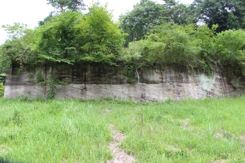 3つの中継所跡を探せ編2017 納宮中継所跡 ぱっと見。 ただのコンクリートの壁(涙) しかも! 手前に土を盛ってしまったため・・・ 観光案内のパンフレットに納宮中継所跡とか書かれても、全く分からずに通過してしまう人も多いと思う(困) そして・・・ あの鉱山の事を知らないと? この索道の価値がイマイチ良く解からないし? 仮に索道だと知っても? この手の物に反応する同業者は少ないだろうな?(困) 壁にいくつものボルトの跡が!! って・・・ このパンフレットの写真から考察すると・・・ この部分に、スライド式ゲートを上下させるためのハンドルが付いていたッポイ? って、アレ?(焦) こんな高い場所にハンドルとか付けて・・・ どうやって開閉操作をするんだ?? う~ん・・・ 当時の人は身長が4mくらいあった! と、言うのは冗談ですが(笑) たぶん? ダンプの荷台の上に乗ると、丁度いい高さになるのかと? で! ゲートを開けて、上から鉄鉱石や石灰を落としてもらって! 荷台の上で、スコップで万遍に馴らして積んでいったのではないかと? で! 終わったら閉めておく? って、開けっ放しになってるぞ? この写真!(焦) まあ、繁忙期でもない限り? 鉱石は、そのまま三峰口まで運ばれていくので・・・ 滅多に使わなかったのかもしれませんが? で、開けっ放し??(困) 次に、正面に向かって右側に進んでみると! う~ん・・・(悩) あまりに埋まり過ぎてて(泣) って言うか、お隣の畑の所有者さんが? 行き来するのに便利なように小道を付けてたりするし(笑) ちょうど、写真の右端。 切れちゃっている部分が、どうなっていたのか? これでは想像すらできない!(泣) ただし! この角度から見てみると!! 途中で、コンクリートの打ち方が変わっている。 しかも高さが変わっているので! 写真に写っている部分から右側は、建屋が無かったのかもしれない? だけど!!(泣) 色々となサイトを探しているけど・・・ 全体を写した画像をアップしている所が見当たらないんですよ!!(悔) まあ、仮に見つけたとしても? 許可なく転載できないんですけどね!(困) そして 建屋の支柱が乗っていた部分。 結構、凝った造りなのね?(驚) 末永く大切に使おうとしたいたのでしょう? 一時的に・・・ 仮設の意味を含めて、のっぺらな形にしなかったことから!(凄) この中継所に対する、鉱山の力の入れようが? って言うか、生命線だっハズですしね? 狩り掛トンネルが開通して、自動車が入れるようになる前は! でも・・・ 観光案内パンフレットで紹介しているにしては・・・ もう少し、奇麗に保存しようとか? そう言う意思はなかったのか?(困) そんな事を思いつつ。 次回! 脇から、上の方へと回ります。にほんブログ村