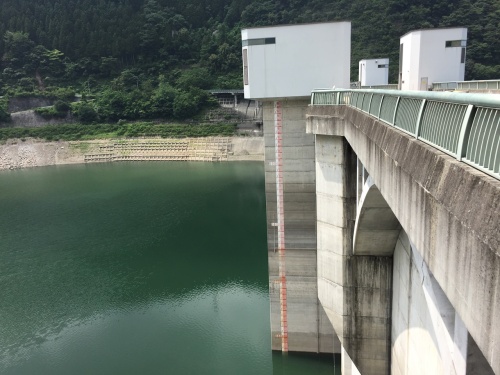 台風5号のおかげで!? 貯水率が56%まで回復したぞ! とか言っている滝沢ダムと比べ・・・ なんだろう? この余裕感たっぷりの光景は・・・(満) カツカツの荒川水系と違って? 多摩川水系の方は、なんか余裕ありそうな雰囲気だぞ! て! 今年。 首都圏の水瓶がどうとか、あまり騒がれていないのは・・・ 去年。 渇水で困っていた利根川水系にあるダムの平均貯水率が85%と、余裕な状態にあるから! で・・・ 奥多摩の方はと言うと! あまり雨が降っていないような気がするのですが! って言うか、青梅市の外れ。 吉野街道沿いの・・・ 未だに、旧・町営水道を使っている地域の人たちは!(焦) 6月に入って、沢が枯渇して半月近く断水するとか!!(乾) 結構、大変な状態になっていたりするんですよ!(泣) ですが! なんだろう? この減勢工に貯め込んだ水の量と・・・ しっとりと濡れた洪水吐の姿。 でも・・・ 結構蒸し暑かったりするんですよね(泣) 温暖化の進んだ現在。 奥多摩くらいの中途半端に低い標高は! 見た目は涼しいのに、かなり暑かったりするんですよ!(涙) という話は置いといて! なお! この減勢工から溢れているのは、水根沢の水なので! 小河内ダムの貯水率とは全く関係無かったりするんですけどね! 実は・・・(焦) と言う事で! 一体どうなっているのでしょう? 小河内ダム!! また以前のように、渇水で・・・(困) 謎の島とか! 更には!!(叫) 神殿跡 じゃなかった!(焦) 建造時使われた、セメントの精製プラントの遺構とか! もしかしたら出てきているのではないかと?(ハアハア) 不謹慎ながら、マジ期待しながら!! やって来た小河内ダム ぐ! 洪水吐のゲート。 水が干上がって、剥き出しになってる! って、このコンクリートの上で初代仮面★イダー1号とクモ男が戦ってたりするんですよね!! でも、何故か(焦) 突然のように稲田堤に舞台が変わって、そこで決着がつくと言う(焦) だけと、ラストシーンは再び小河内ダムになる。(ちなみに前半のシーンは富士五湖方面で撮影されていて! 病院とかのシーンは川崎市の浄水場で撮影されていたり!) 当時の撮影のロケハン。 1話分撮るのに、物凄く彼方此方で撮影しているんだな?(驚) って言うか、最近のシリーズでは! そこまで経費をかけていないのでは? と・・・ 思ってしまったり? という話も、関係ないから置いといて! で! 水位が下がって、ゲートが全て見えてる!!(焦) だから、やっぱヤバイんじゃね? 多摩川も?? と思った貴方。 甘いぞ! そう。 夏場は、このゲートが出ててOKなんだぞ! ココまで水位がある年もあるけど。 その時は、逆に雨が多すぎるって事だぞ?(困) で! 小河内ダム 貯水率に余裕あります! 多摩川水系は、今年も水に余裕がある! 利根川水系と合わせると・・・ 都内の水は、まだまだ余裕がある(だけど、節水しようね!) そのせいで大騒ぎしていないんですね? ちなみに! この日の貯水率は・・・ 87.5% 多摩川水系は、荒川水系のように平年に対しての貯水量ではなく! 普通に、満水時に対する貯水量を表示しますから! 夏場の貯水量に換算すると、ほぼ100%に近い数値だと思ってOKって事になる う~ん・・・(悔) 湖底の遺構が出ているのを期待してきたのに!(泣) でも、この夏場に水が少ないのよりは良いか? 三峰と、雲取の山を挟んだだけの違いなのに! この貯水率の差は一体何?? なんて疑問に思っている暇はないぞ! 次回。 荒川の支流なのに全然違っている様子になっているダムがある! そう。 一昨年は貯水率17%にまた落ち込み! 湖底の物が殆ど見えていたと言われる伝説のダム。(画像撮りに行けなかったのが悔しすぎる) その名は・・・ つづく。(って、今月はダム強化月間ですし!)にほんブログ村