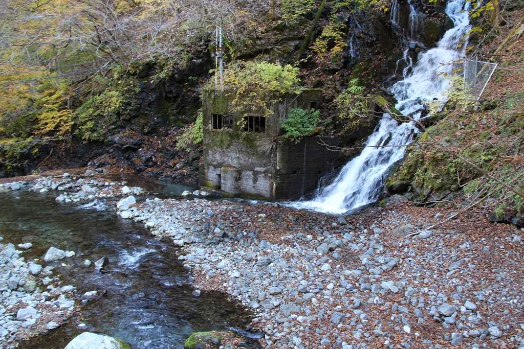 金網の途切れる部分までやって来ました この先から ちょっと高低差があり 足元が物凄く悪くて崩れやすいけど 河原に降りれない事は無い! だけど! 対岸に監視カメラがあるしね!(怯) そして何より 誰かが真似したら困るし と言う事で! そう! 降りなかった事にしておこう!(隠) ちゃっかりと画像撮ったけど ここで公開しなければバレる事は無い と言うのは・・・(泳ぐ目) ま、まさかね?(滝汗) そ、そそそそそ、そんな事 やってる訳ないじゃないです! そう! 間違っても金網の切れ目から降り てないよ! 本当に!!(誓) ほら! 川面の位置から高低差を感じる画像だよね? 決して水面とほぼ同じ高さから撮ってないよね? ね! だから何度も言うけど 河原に降りたりしてないからね!! 結構良い勢いで落ちてくる 鉄砲沢の水 で・・・ こんな場所を渡るための橋が架かっていたのですが 2014年の大雪で圧壊しました!(折) ペキっと・・・ 真ん中から真っ二つに!!(唖) って言うか、半世紀以上前から架かっていたはずの コンクリート板一枚の橋 バラバラになって落ちていない所をみると ちゃんと鉄筋が通っているのかと? あの・・・ 一昨年の台風19号で流されたりとかしてないか? ちょっと心配でしたが! 折れたままの状態で残ってます それにしても・・・ 発電所施設内に入るのに この橋を渡るって 職員さん その度に、ずぶ濡れになっていたのではないかと?(滴) まあ 現役時代と違って? 鉄砲沢の水だけでなく、東沢から導水管で送られて来ていた水も 上のある水槽が壊れているため(困) 溢れ出していて、その分が加算されて流れ落ちてきていますからね 当時は、もう少し 水量が少なかったのかもしれませんが?? でも・・・ この発電所跡が無ければ ココ 名勝・ナントカの滝 とか言って、宣伝していたのかもしれないな? ちょっと落差は低いけど あと、奇麗に整備されて 氷柱スポットとして公開していたかもしれないけど? って、2014年の大雪が来る ちょっと前の画像です ただし、ソコソコ陽当りのいい沢なので 溶けちゃうのが問題かもしれませんが?? 根っこが剥き出し状態になって それでの生えている木が! その生命力がスゴイです!!(力) そして、廃発電所の方はと言うと・・・ アルミサッシではなく 鉄製サッシを使っているという時点で 相当古いことが分かります しかも両端で咥える クリップタイプの留め金とか 今では見る事すら珍しいぞ! 恐らく 発電で使った水を排出するための穴 コンクリートの巻き方も 結構古いタイプの物ですしね・・ そして・・・ 削られて 更に亀裂が入って! 鉄筋が出て来ちゃってる しかも かなり雑な鉄筋の入れ方だな?(笑) コレ まあ、当時としては これがデフォだったのかもしれませんが?? そんな だいぶ痛みの進んだ建屋跡に って言うか、本当に 大洞第1発電所が出来た時に廃止されたとすれば 昭和35年から放置されていた事になる 今年(2021年)で61年 画像を撮った時点で60年 戦後に建造されたのであれば、約70~75年 戦前だったら80年以上も前の建物と言う事になる可能性が!! 本当に丈夫だな? 当時の建物! で・・・ そんな建屋の上に うわ!(驚) 監視カメラが更新されてる!!(凄) 一体どうやって、あそこまで行って交換したんだ? と言う話は置いといて! 4連のLED照明付きの 最新式のカメラが設置されてる! アレ かなりの広範囲で撮れるヤツだよね? 下手すると照明の範囲内で 回転するタイプかもしれないぞ??(焦) って、事は! 下に降りたの写って いやいやいやいや! だから降りてないって!!(滝汗) ほ、ほほほほ本当だよ! と、とりあえずです! 橋を渡って右岸に行こう と、言う事で! つづく にほんブログ村