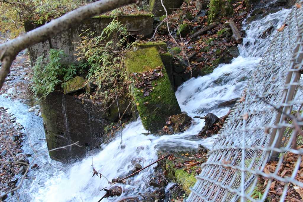 大血川林道の廃発電施設2020編 と言っても、写っているのは 大洞第1発電所の取水口の一つだったりしますが・・・ たぶん? 大洞第1発電所の工事が始まったのと、ほぼ同じ昭和33年頃に造られた物だと思うのですが? で? もしかしたら この発電所が竣工した当時は まだ存在していなかったのかもしれません? ただし! 詳しい資料が未だに見つかっていないので(悔) 詳細は不明です(涙) で? ちょっと待て? 取水口が2つあるぞ??(焦) って言うか、一つは大洞第1発電所へ水を送るためのモノに間違いはないはず? ですが?? 真横にも・・・ 砂利等が入らないような鉄製の柵が付いた取水口があるんですけど!!(驚) 今まで全く気付かなかったぞ! で・・・ ソコに落ちないように? あの・・・ 安全帯を引っ掛けるワイヤーが設置してあったのか? 万が一落ちると 水深こそ、それほど深くないけど 水が吸い込まれる負圧で柵に張り付いて動けなくなる危険性があるから(怖) だから完全に落ちないよう 安全帯をしろ! と・・・ って言うか、それだったら 普通に安全柵を付けた方が良いんじゃね? あのワイヤー どう見ても信頼性が低そうですし(千切) で? どちらの穴から大洞第1発電所に水を供給しているのか? それが疑問なのですが って言うか、良く考えると 取水堰にゲート操作用のハンドルとモーター 2個付いてたよね? 片方が予備ゲートのかもしれません? この取水堰の正面に回る手段がないため(悔) どういう構造になっているのかが不明ですが・・・ もしかしたら?片一方は、普通に? 堤体の下に水を流しているだけなのかもしれませんが? ソレまでは 増水して、越水しない限りは・・・ 地下に滲み込んで、堤体に開いている穴から出てくるのかと? そう思い込んでましたが 普通の砂防ダム的な構造になっているのかと? そう思い込んでいましたが・・・ 大血川の水量も多いことから 遡上して登って来る事も困難(泣) 堤体の正面に回れない以上 どういう構造なのか? 謎のままです(涙) とは言え! まだ新たに気付くことも多いんだな? で! 2014年の大雪の際 恐らく 溶けて来た時に雪崩で押しつぶされ 半壊していた金網が・・・ 復活したけど なんか知らないけど その辺の細い木の枝に押しつぶされてるし(倒) って言うか、あんな細い木でも 金網 曲げちゃうだけの力があるんだ(驚) 大自然の力 恐るべし!!(怖) こんな ひ弱な金網なので・・・(曲) コレにぶら下がりながら あるいは乗り越えて この先に行こうとか 間違っても考えない方が良い! たぶん? 金網と一緒に 崖下 と言うか、滝口に転落するのは ほぼ確実なのではないかと?(痛) それにしても 結構圧巻なんですよね! この滝 とは言え 元々の鉄砲沢の水だけでなく 東谷から導水管で送られて来た水が 旧・発電所用の導水管用溜め枡からオーバーフローした分が追加されていますから 相当な水量なっていますし!! って言うか、滝の名前が付いてないのが 少し可哀そうな気がするよね? まあ実際には・・・ 滝ではないから仕方ないのかもしれませんが? 何しろ 滝つぼが無いのがね・・・(涙) で! 岩肌に生えた木の根が 宙に浮いてる てことは!(焦) もしかすると この付近の岩 水圧や、あるいは大雨で増水して 鉄砲水が増水した際に、割れたのか? で・・・ 岩の隙間に生えていた根が 剥き出しになっているのか?? あと・・・ 老朽化した 東谷からの導水管出口にある溜枡が 一部、破損している で・・・ 元々は土で覆われていた部分を洗い流してしまったのかもしれない? で・・・ 根が宙に浮いた形になっているのか?? あ! でも・・・ 群馬県の白糸の滝のように 叶山鉱山から湧き出た水を 排水溝から出している、半人工物にも関わらず「滝」を名乗ってい場所もありますからね!(笑) ここも、どさくさに紛れて? 滝を名乗っても・・・(焦) でも、やっぱし… 滝つぼが無いから 滝を名乗れないのか??(涙) そして、やっぱし! この金網に命を預けるのは危険すぎるから この向こう側に行くのは止めよう(怯) 落ちたら助からない確率 高そうですし・・・ つづくにほんブログ村