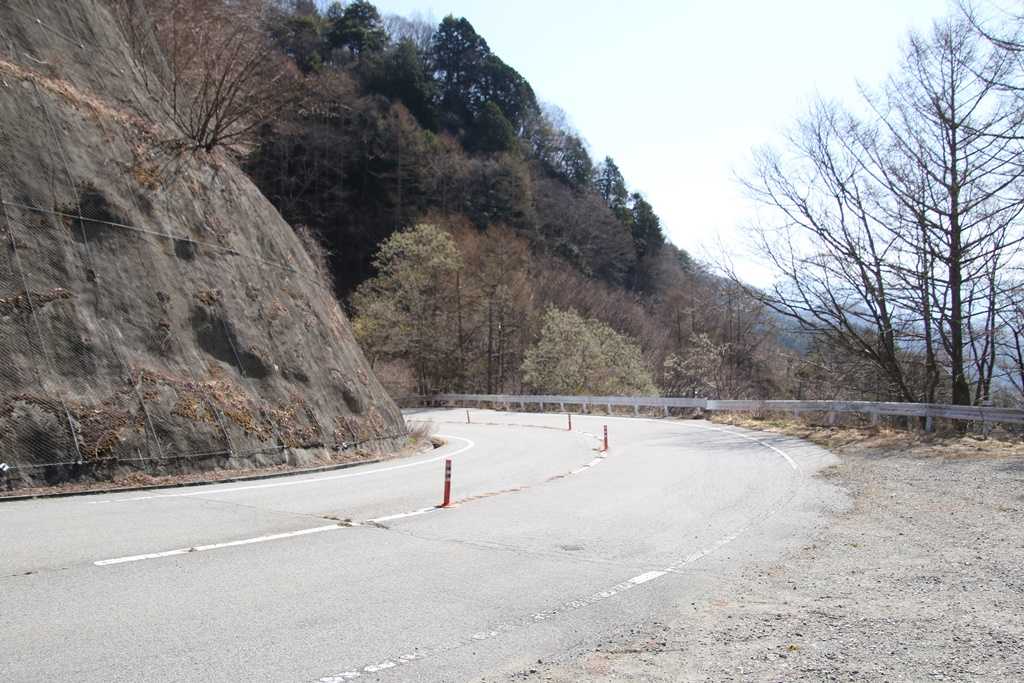 今回は時間の関係で入らないけど・・・ 次回のために、チェックだけはやっておく! とにかく! 一般車両は通行止 らしいけど 徒歩で入ってはいけないと 何処にも書かれていないから!! そして! ゲートも無いし チェーンも張ってない! って事は、進んでも良いって事だよね? って、たった10m程度進んだら ゲートが隠れてました みたないオチがあるかもしれないけど?(困) この付近の林道の・・・ 冬季通行止め区間書きされている看板 でも ちょっと奥に設置されているから 見落とされちゃうぞ!(困) 大弛峠という 自動車で通過できる、日本でもっとも標高の高い峠 乗鞍が一般車両通行止になった現在(涙) まさかね・・・ 山梨県が日本最高地点をゲットする事になるとはね・・・(焦) あと余談ですが 峠ではなく、終点が行止りと言うシュエーションなら 富士スカイライン 5合目駐車場が! 自動車で到達できる日本一高い場所となります それを差し引いても 日本で2番目に高い場所となる大弛峠 一度、トランザルブで崖落ちしかけたことがある(笑) 大弛峠 で・・・ 長野県の川上村経由で向こう側に抜けようとして、山を下っている最中に2回も転倒 って言うか、体力尽きて 脚でバイクを支えきれなくなったことがある大弛峠・・・ ああ、懐かしい場所だな? って、その大弛峠への起点となる場所がココ! ただし! 今回の目的地から少し奥に行った場所からは 6月にならないと通行できないので(悔) 上までは行きません! また・・・ クリスタルラインも、今回の目的地から先は5月に入らないと通行できないので 長野県まで抜ける って、そんなことしてたら 夕飯までに帰れなくなるから! 自粛明けで、焼肉楽しみにしてる母が待ってるから(焦) 約束スッポカスと、後が怖いから・・・(怯) 絶対に15時までには実家に戻らないといけないので 11時には目的地から撤収しなければならないと言う 殆ど強襲作戦に近い事をやらなければならない実情の中 先に進むとか無理だし!!(泣) って、コレは発電所への林道とは関係なかったか? どうも? 九十九折りで一気に標高を稼がないといけないらしい? 砂防ダムがあるから ココでダムの上まで行かないといけない って、砂防ダムの上に行くのに 想定していたよりも、結構遠回りを強いられるんだな? あと余談ですが 林鉄が走っていたかもしれない時代 この九十九折りは存在していません この坂道も存在せず! 奥に見えている砂防ダムも無く もう少し勾配の緩い路盤が 琴川に沿って通って行ったポイ? って、本当の林鉄なのか? まだ調べていなので 本当の都は不明です が! 簡易軌道を示す線が描かれていたので たぶん存在していたのでしょう? って、その話は置いといて! 今回進むのは、こちに側の しっかりと舗装された林道 以前は! そう ダムの建設工事をしていた頃は・・・ 結構、頻繁にダンプカーが走っていたので! 鉢合わせになると、結構・・・ 涙目になる事もありました が! 今は、そんな事無く進めます そして! 意外に大きいな この砂防ダム!! 流れている水量も かなり多いぞ! 下流に有る浄水場に取水している訳ではなさそうですが でも! かなりの水量と規模を誇ってます そして、こちらは・・・ たぶん? きっと・・・ あの 四角く金網で囲っている場所から出ている水だな? 地下水脈か何かあって ココで一旦、外に出るようにしているのか? そのうち この付近の事も調べていこう とりあえず今回は! 偵察するだけ と言う事にして! それと! この付近 結構立派な岩盤なんだな? 岩盤が硬い場所だから その上に砂防ダムを造ったのもかれしない? で・・・ もし本当に林鉄が、この川の右岸を通っていたとすれば 建設時は、難所になっていたのかもしれない? 今回は、久々に望遠レンズ 持って来てますから! 去年は自粛で稼働率が低くなっていた・・・ 「あのお方」から譲っていただいたD70も たまには使わないとね! と言う事で やっぱし、日中の明るい時は! 良く撮れるな!! シャッタースピードも落ちないし!! って! こうやって、岩盤の上を流れる水も 結構良いよね・・・(和) 通常の沢と違って 水の動きも独特ですしね!! あと! 砂防ダムの右岸側が 紅く染まっています! 鉄分を多く含んだ鉱石が産出されるのか? 硫黄部とは、ちょっと違う感じだな? なお 上流に存在した乙女鉱山は、鉄鉱石ではなく 水晶原石の採掘をやっていたらしい! まだ詳しくは調べてません! 分岐点を見つけただけの状態で止まっています たぶん 手を付けれるようになるのは、まだ先の話になるのかと? と関係ない話はおいといて! うん あまり深く首を突っ込むと 深い沼に嵌りそうだから 止めておこう!(逃) ゴールデンウィーク前だというのに もう終わりかけている桜でも観て・・・ って言うか、4月20日を過ぎてから雪が積もるとか! この付近 過去に何度かありましたから(笑) 結構、標高が高いです そして 晴れてなかったら、結構寒いぞ! 冬用の装備で来ててよかったぞ!! って、ココで時間取り過ぎてたら 目的地での活動時間が少な