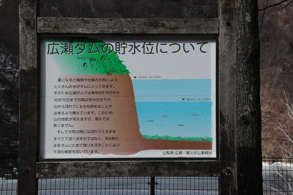 山梨県のダム 基本的に6大ダムと呼ばれますが・・・ 広瀬ダム・琴川ダム・深代ダム・塩川ダム・荒川ダム・大門ダム 全て山梨県が独自に造ったダムです! 国土交通省(旧・建設省)の管轄ではないんです! 金丸さんの地元なので(闇) 国が絡んでないのが不思議なくらいなのですが? その他にも発電用のダムがいくつか存在しますが それらも全て 山梨県が独自に建造したり 東京電力の所有する物だったり 民間企業が自社工場の電力を賄うために建造したもので ってアレ?(焦) お隣の埼玉県 お師匠様 じゃなくて、あの色々と黒い噂が絶えなかった県知事様が 水資源機構(国土交通省)に大量にダム建造許可を出したのに対して 金丸さんから嫌がらせ? って言うか、嫌われていたのって・・・ 「ダムくらい自分の金でどうにかせぇ」って意味があったのか?(滝汗) と言う冗談は置いといて! ダム下にある 広瀬発電所も山梨県営の物です 元々は東京電力の水力発電所があったそうですが 広瀬ダムを建造する際に、その権利を買い取って湖底に沈め・・・ 県営の発電所を建造してしまったという(凄) って、この位置から見ると 排水ゲートと 分水路が見えてるんですね! 初めて気づきました!(驚) 通常はココから貯めた水を出して 笛吹川の水位を調整しています が・・・ この規模の排水路で、一級河川の水位を調整できるって?(焦) ちなみに! 干ばつに悩むことの多かった、この付近ですが あまりに急峻すぎる地形のため 雨が降った後に、一気に水位が増して 大洪水に発展!(溢) 100年前と現在では 下流域の川の流れが ダムのせいではなく 自然の力で変わってしまったと言われています よくよく考えたら この狭い水路だけで そんな大自然の猛威を調整している事自体が怖い気がした来たぞ!(怯) でも普段は それだけ雨が少ないって事なんだろうな?(乾) 雪解け水は豊富なんだろうけど? でも、こう言う事態に国が動かなかったと言う事が ちょっと不思議? って言うか、笛吹川は 富士川となって駿河湾にそそぐことになるので・・・ 東京が被害に遭わないから見て見ぬ振りしてた そして! 県営のサッカー練習場まで造ってしまった山梨県 現在は・・・ ちょっと放置プレイ気味(涙) ちゃんと、仮設トイレまで設置・・・ ん? ちょっと待て?? 厳寒期は利用者が居ないから たぶん閉鎖されているはずだけど? アレ? たぶん? 定期的に中身を回収に来ているんだよね? 厳寒期 そう! 凍るんだよね? タンクの中・・・ 利用者が出したものが!(氷) 以前ね 仕事で弘前(青森)に行ってた時 まあ、比較対象に出来ないくらい向こうの方が寒いけど リンゴジュース工場の新設工事で数日間 現場に詰める事になって おトイレが仮設トイレ2つしか無くて 昼間ですら、晴れていても風が吹いただけで 空気中の水分が凍結してブリザードになると言う弘前市郊外 車の中に暖かい缶コーヒー置き忘れると、3時間後には完全に凍っているという・・・(唖) そんな場所だったから 仮設トイレの・・・ タンクの中身と、便器からちょろっとはみ出ちゃったものが・・・ 大変な事になっててね あと、工事後に回収に来るレンタル業者さんが 「アレ、大変なんだよね 某で突いて、砕いて、少しずつ中身を出さないといけなくて(泣)」と言ってたのが物凄く印象的で・・・ ってソコまで寒くないとはいえ! 広瀬ダム駐車場の公衆トイレですら凍結防止のために冬季閉鎖になると言うロケーション! アレ・・・ 本当に大丈夫なのか?(焦) なんか凄く気になって来たぞ! かと言って そのために、下に行くのも・・・ とか思っているうちに 晴れてきたので!(嬉) って言うか、太陽が出てるだけで 気温が0℃でも、ちょっと暖かく感じる!(和) 再び、凍結している広瀬湖側に 晴れてる時の氷の色って 本当に奇麗ですよね!!(純) あまり長く見ていると 紫外線で目をやられるけど! って、最近 ただでさえ老眼が(泣) って言うか、入院してから 一気に視力落ちた気が! あと余談ですが自分 10代後半から飛蚊症に悩まされていて って飛蚊症って 普通は「ある程度、歳を取ってから出るものなんじゃないのか?」と思うのですが 白内障ではないから良いとしても 目の前にね 顕微鏡で見た色素の抜けたミドリムシって言うか単細胞生物みたいな物が動き回っててね(涙) 明るい場所では瞼を閉じたも 見えちゃうんですよね・・・(涙) コレ 治らないというのが辛いですよね・・・(泣) って、話も関係ないから置いといて!!(って、何処から話が脱線したのか?) そして、また再びダム下側! 晴れていると・・・ 全然、雰囲気が違う!!(凄) あ! でも・・・ 広瀬ダムの石の積み方って 他のロックフィルダムと比べると 結構雑な気がするんですけど? そう 他は、もう少し小さめの石を使っていたり 大きさを整えていたり 隙間に細かい砂利を詰め込んでいたりして なんとなく、降りれるんじゃね? と思わせてくれるのですが この石の積み方 何となく崩れそうだから(怯) 入りたくないな・・・ と思っちゃうのですが!! 軟弱地盤が多く