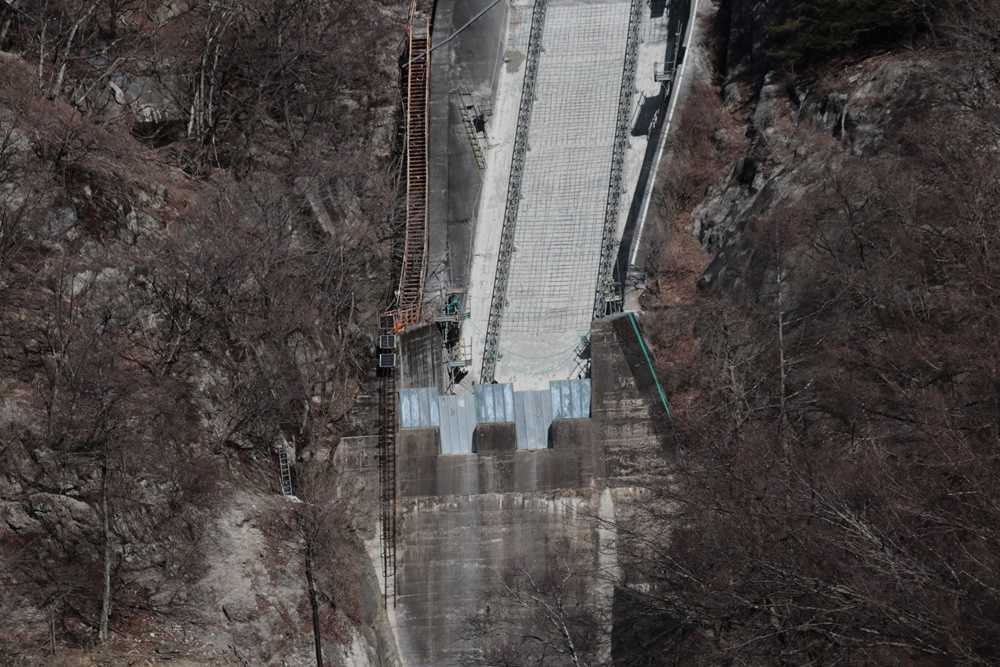 小河内ダム2022編 この日 比較的、気温が高かったので(予想14℃) 風が強くても、なんとか我慢出来ました そう コレで 例年通りの2月の寒さだと か、顔が痛い!(射) とか言って、この辺りで撤退していたかもしれない?(笑) ココから先 前傾姿勢を取って 風圧に耐え 風が途切れるタイミングを見計らって少しずつ前に進んで!(行) ダム下を覗き込んでハアハ・・・ あ゛!(叫) 望遠レンズ バイクのシートバックの中に入れっぱなしだった!!(焦) 超広角だと 確かに迫力がある画像は撮れるけど そう スポット的に確認したい部分を撮る事が出来ない!!(泣) て、駐車場まで戻るの面倒だし この強風の中、駐車場からココまで戻って来るのが大変だから いいや今年は! そう 結論から言うと一昨年 この左岸の・・・ 線路跡や、7tクレーンのレール跡とか 建造当時、地肌のままの状態の上に敷かれていたのに 完成後に現状の石垣を造ってしまったので 完全に形跡が消失してしまっている事が判明してますから 一生懸命線路の跡を探しても無駄だと言うとが解かってしまったので(滝涙) もう無理して撮る必要が無くなってしまったので そのために望遠レンズ 取りに帰るのも悔しいですし!!(涙) その割には 中途半端に・・・ 線路の車止めとか コンクリートバケット置き場の基礎部分とか なんで、そのまま残したのでしょう? 全て撤去してから石垣を造れば良いと? って言うか、期待を持たせるような物 残しておくの止めて欲しいな!!(願) って。 そんな物を堤体の上から探す同業者とか 殆どいないし・・・(滝汗) 文句を言う人って、自分を含めて片手で足りるくらいしかいないんじゃね? って言うか、本当に居るのか同業者?? って言うか同志よ・・・ 怖がらずに正直に名乗り出ようぜ!! そして! 残雪のおかげで 去年、入り込んだ 謎の平場がクッキリと見えています 黄色い線の部分! って、やっぱし 絶対に何か 建造物が存在していたよね? 右岸に工員さんの寄宿舎があったとされる記述や資料が無いので 作業道と言う訳ではないと思いますし でも本当に 何の資料も出て来ないんですよね あの場所(悔) 小河内ダム完成後に広場が造られたという話も聞いたことがありませんし・・・ そして! エレベーターシャフト付近で 一番の強風に晒され・・・ もう、右岸方向を見ながら画像を撮るのは無理だよ!!(涙) 風が強すぎて レンズにダメージ喰らっちゃうよ!(涙) プロテクターが付いているとはいえ 砂埃とか、思いっきし付着しそうですし!!(隠) で、画像を撮っていないにも関わらず 強風で進むスピードが遅いために、数分かけて辿り着いた 展望塔 ん? なんか工事やってる? って言うか、この強風で倒れないのか? この仮設足場!! いや? それよりも! いくら展望塔が(蔓延防止法の影響で)閉鎖中だと言っても 工事業者さんに中を通らせてあげず って言うか、工事期間中だけ 一般開放を止めるとか そう言うのは無いのか? いや! 公共工事って、いっつも思うけど 水道もトイレも 下手すると屋内の階段とかエレベーターすら使わせてくれない事が多いよね?(鬼) で? 仮設トイレ持って来させたり 真夏なのに、ポリタンクに水を入れて持って来させて 工事業者は、その臭くて 日数経ったらヤヴアィんじゃね? って言うか、ポリタンクの中 苔生えてね?(緑) みたいなのを使わされたり 労働環境は最低の中で仕事させられるよね?(怒) って言うか、もう 下請けいじめだよね? アレ! 建前上は・・・ ゼーキン貰って使ってる水道や電気だから 業者が勝手に使う事はダメ みたない事を言うけど! あんたら現場に指揮をしに来ているのは、正規のコームインじゃなくて派遣社員だろうが!!(怒) コームインの人達は現場には絶対に出て来ないと エアコンの効いた環境の良い場所でボケェとしながら、報告書出させてるだけやろが! ゼーキンの無駄遣いしてるのはどっちだよ!!(激怒) と・・・ あ! こう言う真実は言っちゃいけないんだっけ?(笑) 一応・・・ 作業員はフルハーネスの安全帯着用(今年から義務付けされました) でないと、この階段を上り下りする事も禁止しているのでしょぅけど? コレ 労基法とか安全衛生法のグレーゾーンに近い所だよね?(焦) もし、この日みたいな強風だったら かなりヤヴアィ気がしますしね? で! なんで現場事務所が、右岸まで行かないといけない設定になってるの??(滝涙) しかもトイレも無いし!!(涙) たぶん? 軽トラの荷台に仮設トイレ詰んできて その日の作業が終わったら、仮設トイレ詰んだまま宿泊先とか 会社まで帰らないといけない設定になってる可能性が高いな コレ!!(涙) しかも、平日は毎日のように軽トラに仮設トイレ詰んで 小河内ダムまで来るとか・・・ で? トイレを積んだ軽トラが右岸まで通行する許可が取れいなてと大変なんですよね(漏) 12時から13時は休憩を取らないといけないから 職人さん、軽トラを都営水根駐車場に停めて置いたりして ソコまで出ちゃいそうなのを我慢して数百メートル そして、スッキリしてから右岸んの現場事務所
