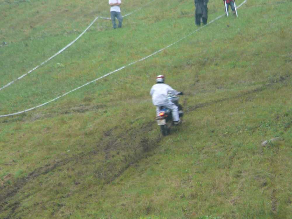 結構、激しい勢いで 雨が降ってます!(濡) ヒルクライムコンテスト会場になっている スキー上級者向けコースの路面状況は 更に悪化していきます 前にも書きましたが この年のヒルクライムコンテストの結果が 翌年以降の開催に大きな影響を与えるようになりした この雨がね・・・ 登りきれた人が たった2人だけだった と・・・ しかも! この後 このブログ・・・ って言うか、ブログを続けていくうえで まさか20年間続けることになるとは思って無かったけど そう ブログって恐ろしい? と・・・ そう思わせる事件が発生する事になるんです 次に登っている人は・・・ これ って言うか、このバイク マジで欲しかったんですけどね 限定生産なうえ 価格が高すぎて手も足も届かなかった と・・・ HP2エンデューロ 本当に、こういうシンプルで軽いバイク 造ってほしいよね! まあ、そういう意味では 最新のF900じー ケフンケフン 余計な事を言うのは止めよう!(滝汗) 何処で店長がチェックしているか分からないから!(怯) そう 意外なところでブログをチェックされてたりしますから 余計な事は絶対に書いちゃダメなんだ!!(叫) まあ、母の介護の方もあって バイクを買い替えるとごろではないのも 現状だったりするので 今年はマジメに車検を受けることになるんですけどね! それに年収が100万減ると マジできついぜ!! 更に、海の向こうのパツキン大統領様が 公約通りドル安にしてくれないから いつまでも円高で 輸入品が高すぎて買えないし!(困) まあ、その話は置いといて だ! 1コーナーの所で パイロンに接触してしまいました!(泣) で! 慌ててしまったのか コントロールを失い 急激に左に戦艦をしてしまいます! で・・・ まだ、この頃は 観客がコースサイドギリギリの所まで行くことが出来たのですが ソレが災いして そのまま 観客席に突っ込んで!!(滝汗) って・・・ しかも、この日 2回目の事だったらしい ちなにみ・・・ この1コーナーにでは女性の方が見学をしていたらしいのですが かなりお美しい方だった との噂もあり!(姫) その人魅力に誘われて 2人の人が、その人めがけて凸してしまった と・・・(唖) 1コーナーの魔女伝説が ここに誕生する事に って! ちなみに この傘をさした女性ではない 画像右端の方で転んでる人・・・(泣) らしいのですが 18年前 このネタを書いたところ ご本人様からコメントをいただいてしまって(華厳の滝汗) ブログ、マジで怖いよ! 下手な事、書けないよ!!(怯) と・・・ あと・・・ このバイク欲しいとか 書いたらマジでヤバイよ! 速攻でメッセンジャーに連絡入って来るし(ガタブル) なお余談ですが 自分は LINEは・・・ お隣の半島が絡んででセキュリティーがガバすぎるから怖いので まず使いません! なお 負傷者が出ることなく 無事に終了しましたが コレ・・・ マジでヤヴぁいんじゃね? 来年からは、セーフティーゾーンを5m以上取って 観客がコースサイドに入れないようにしないと 怪我人が出るとマズいし! 更にR1200GSはパワー有り過ぎて 途中で曲がるのは危険すぎるから 真っすぐ登る事にした方が良いんじゃね? と言う事で 大幅にレギュレーションが変更されるきっかけとなりました ちなみに・・・ こういう急傾斜の場所で バイクを転ばしてしまったときの・・・(泣崩) 地獄を味わった人 どれくらいいらっしゃるでしょうか? 自分は・・・(滝涙) まあ、何度もやったよ! まだ若かった頃は 勢いと腕力で どうにかなったけど もう最近はダメだよ!! 観客が見守る中 あの位置からの脱出が どれくらい大変なのか・・・ そしてご本人様は 一時でも早く この視線にさらされる状態から脱出したいか! もう気が気でない状態だったかもしれない しかも! シートが高すぎてバイクに跨れねぇんだよ! 自分 涙目で、この状態から反対側にわざと倒した事 2回あるよ!(泣) で、改めて起こし直して 足が届く山側から跨いで乗り直したとか オフ車に乗ってる人なら デフォだよね! そー言うの! で・・・ そうやって転ばすことを大前提として バイクを買うので 残クレとか 絶対にやらないんだな 3年後の支払いが怖すぎるから!!(泣) って話も置いといて この状態で・・・ 押しながら降りてくるのも 本当に怖いんです ギアを入れっパにして クラッチ握りながら そしていざとなってら、クラッチ放して リアタイヤがロックして、その場で止まってくれるようにしながら それでもバランス崩したら アウトだし!(泣) やっと 足が届く場所まで降りてきました これで一安心・・・ って、気を抜いた瞬間に ポテっ よくやるよね!(尋) って、そんな事をするのは自分だけか? もしかして?(焦) って! 今更気付いたけど HP2エンデューロって、シングルディスクだったんだ!(驚) 舗装路で使うのではなく ダートで使う事を前提に ガチで割り切ってるバイクだったんだ 想像していた以上に! そのあと 公認のインストラクター登ります! そう 最悪の路面状況と どS設定のコースに苦戦して 2人しか登れなかった このコースを! って! セミプロ