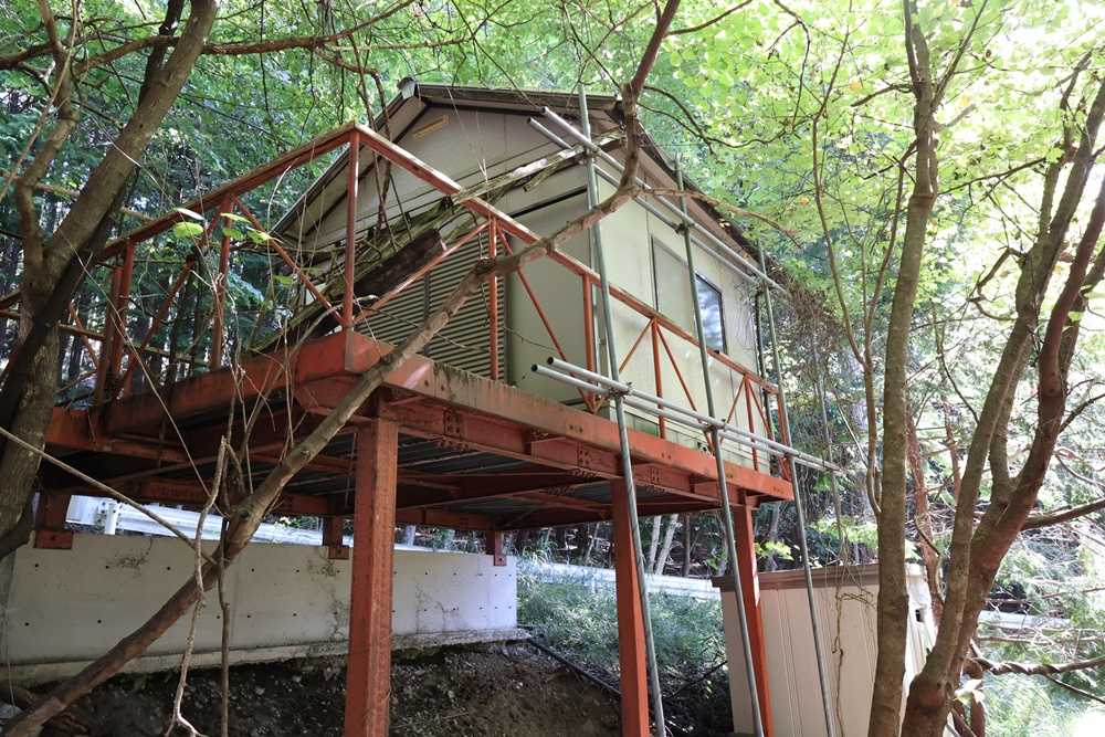 琴川のキャンプ場跡編 現在はソーラーパネルが広がる キャンプ場跡地 まあ、そこそこの広大な土地が廃のままになっていた で・・・ キャンプ場が廃業した後は 果樹園になっていた! その時既に バンガローとかは、一部を残して建物はすでに撤去されてしまっています で・・・ その農園も コロナ前までは確かに存在してたんですけどね! でも! 会社自体は現在でも存続していて 地元では結構なところらしい?(驚) 地元で採れた野菜やゆずなどの加工品を販売していて 結構いろんな商品展開もしているっぽい! しかも山梨県で一番最初に認可を受けた農業法人らしい(凄) まあ こんな山奥で しかも厳寒期は営業できないような場所で(自分の記憶では5月から11月の週末のみだったような記憶が) 生産品の販売とか 来場者が多いのかと言われると・・・ 察してあげてください たぶん、そう言う事なのでしょう? って言うか、どうしてこんな山奥で売り上げが上がると思ったのか? それも不思議だったりしますが たぶん・・・ キャンプ場の土地が余ってたから ソコソコの広さの土地と建物が格安で手に入ったし 地元との・・・? いや 農業法人と言う時点で 農協と敵対していた可能性も有るので(滝汗) あと、ココまで辿り着く前に 軽トラ専用のサーキット じゃなかった! 広域農道が広がり、その両脇には桃とブドウの農園が広がっていると言う事から ここまで辿り着く前に ゴッソリと狩られてしまってたんだろう 観光客を!(涙) たぶん この近辺に山梨の特産品を買いに来る人は プラムとブドウと桃を買いに来るのが殆どだから・・・ それ以外だとね 今なら、付近に量産された道の駅で置いてもらうという手が有るけど そんな便利な物が造られるようになったのは ほんの10年くらい前からだし(困) ね?(涙) キャンプ場だった頃の トイレ跡でしょうか? 薮に埋もれています 昔は ソコソコの数のバンガローがあったような記憶があるのですが って言うか、バブルん時は そりゃあ・・・ って感じだったのかもしれない? そう あの頃は、こういった秘境的な場所に行くのが流行った時期もありましたから とは言え、現在のオートキャンプ場と比べると 質素と言うか 貧相な設備しかない所が殆どでしたが! でも ソコソコの数の車が停まっていたのを見たのを記憶しているんですよね(遠い目) 農園になった後は、関係者の車が停まっているのしか見た記憶がありませんが そして 唯一残っている建物 これがキャンプ場時代のモノなのか 農園になってから販売所として使われていた物なのか ちょっと記憶が・・・ もう、ほんまにジーチャンぼけてもうて でもたぶん? プレハブ小屋だし 窓も少ないし ココに泊まるって事は無さそうだし キャンプ場の管理事務所だった可能性はあるけど おそらくは、農園の販売所だったのかと? う~ん・・・ 雪の重みで一部が倒壊しているけど シーズン中はバルコニーに屋根が付いていた? で・・・ ドアと、アルミサッシの雨戸・・・ なんとなくバンガローっぽくもある?(焦) 良く解らないな この建物 少なくとも人が住んでいたわけでは無いのは確かだと思いますが ちなみに この袖口林道(現・クリスタルライン)がどれくらい スンゴイ道なのかを示している看板が!! なんとなくコレ 雪の重さで倒れたのではなく カーブを曲がり切れなかった車が突っ込んだか?(怯) って感じがしますが って言うか、夜中とか その辺のDQNが肝試しで 廃業した後のキャンプ場や、農園に不法侵入してた時代もあったのではないかと? そんな気が? まあ、それよりも! この建物・・・ なんかヤバくないか?(焦) 建築基準法!!(焦) いや 倉庫とか事務所としてならOK出るかもしれないけど ギリ・アウトっぽい感じもする もしかすると無許可で建てちゃってた可能性も捨てきれませんが? それにしても 凄い場所に建てたな 冗談抜きに!! 特に奥側の基礎部分とか ヘロヘロのコンクリートの板? で・・・ 土砂が流出していて 埋まっている部分が見えて来てたりするんですけど!(怯) あとH鋼で造られた脚も 基礎の上面が斜めになってて 無理矢理鉄板を溶接してる跡があったりとか(唖) 凄すぎるぞ コレ! 危険すぎて使うのを辞めたって感じが漂いまくってる しかも ブロック積みの基礎の上にプレハブ小屋(笑) しかも角波トタン板の上にコンクリートブロック置いてるとか ヤヴァ過ぎんじゃね? これ!!(滝汗) これ・・・ もしかして、県からの指導が入って廃業したとか そう言うのは無いですよね?(滝汗) と・・・ そう疑いたくなってしまうのですが なお、倉庫なんかも残っていますが 恐らく、所有者の方がいらっしゃるはずなので 勝手に中を見たりす、入ったりするのは犯罪になりますから そのままにして 現役時代 ココで、どういう光景が広がっていたのか ちょっと想像が出来なくなってしまった・・・ そう! あまりに斜め上の光景を見せつけられたせいで にほんブログ村