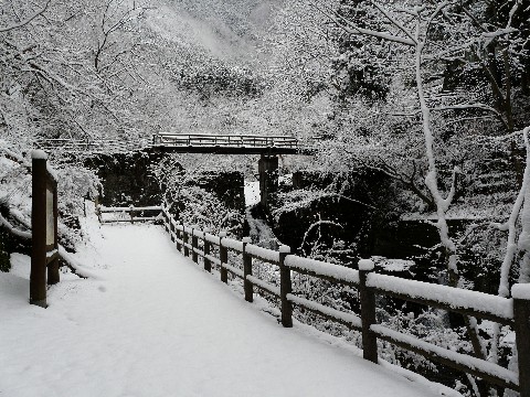周りの側壁や崖の斜面への積雪状態を考えると、イマイチ着雪していなかった 橋付きの砂防ダム (涙)