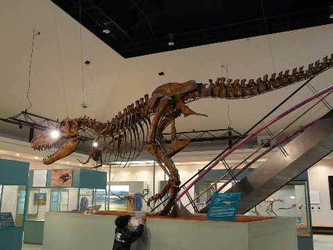 恐竜の名前は置いといて、その骨格標本(レプリカを含む)を見学する自分(恥)。