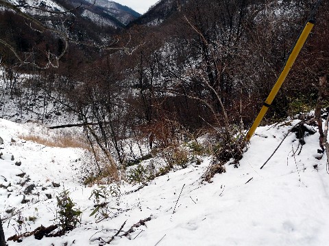 その先には、 余水吐直下の沢 が見え隠れしています!