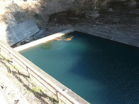 だって普通、減勢工の内側に沢が流れ込むような構造になんて絶対にしないはずですから!!