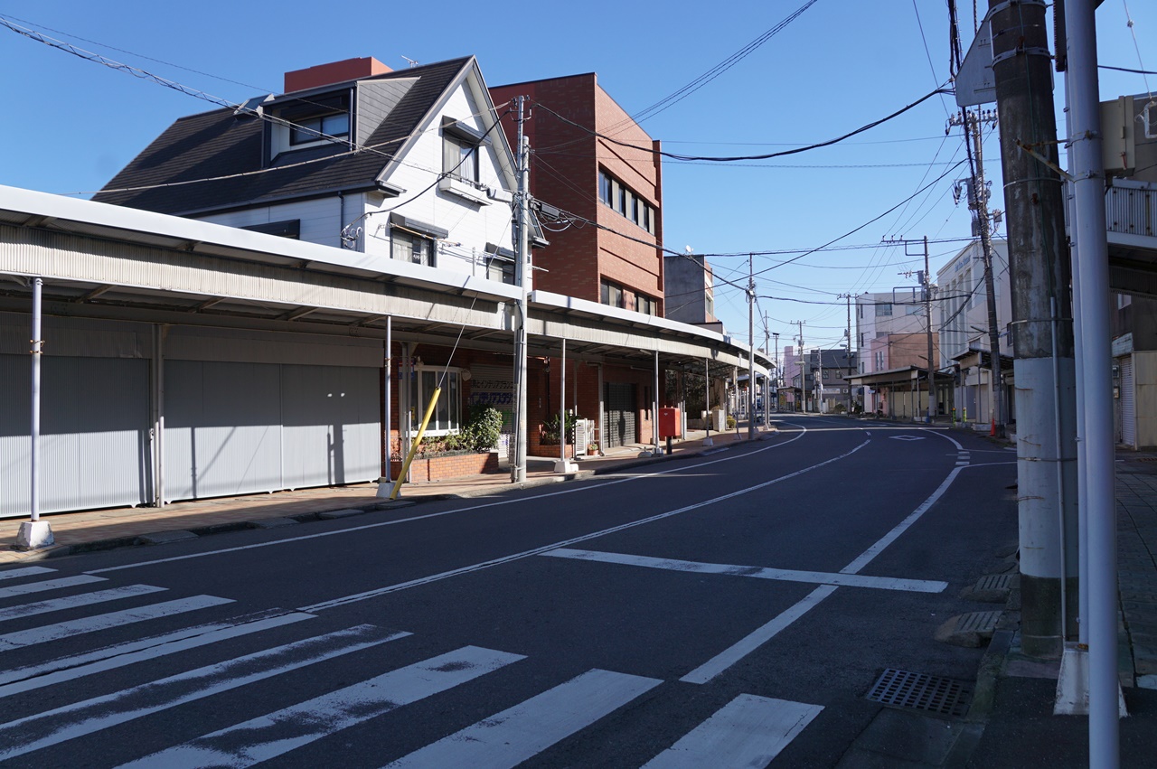 シャッターが閉まりっぱなしのアーケード街を既に通り過ぎようとしている よ!(泣)