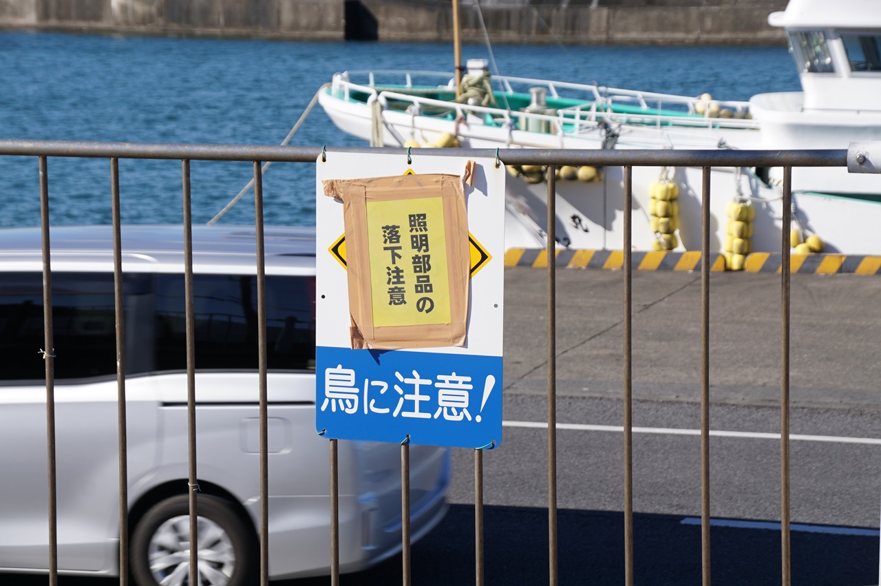 「鳥に注意」の看板 の上から 注意書き が貼ってある!